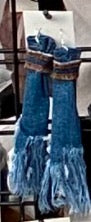 Unique earrings made out of denim fabric,with shredded ends and sterling silver hooks.