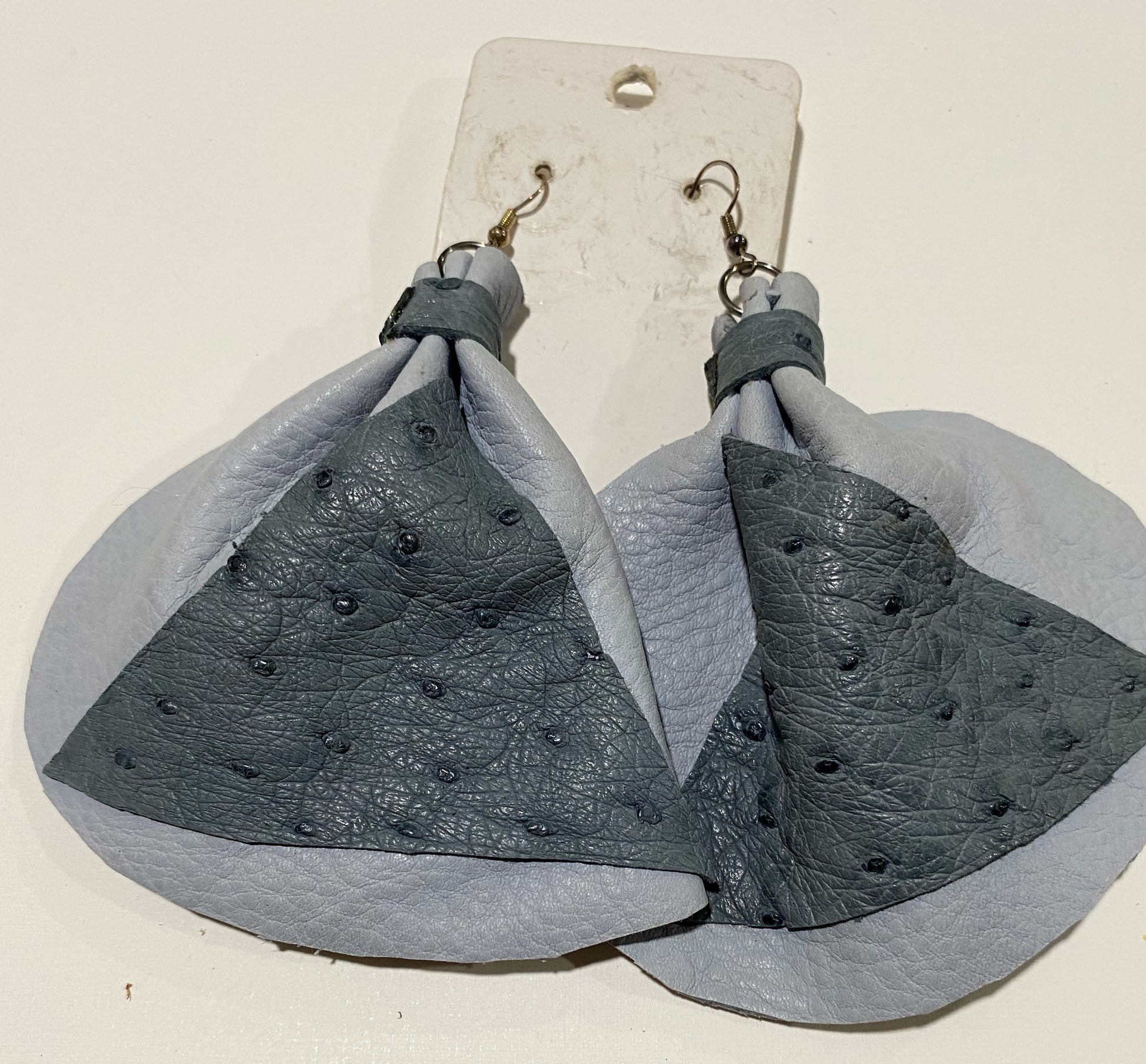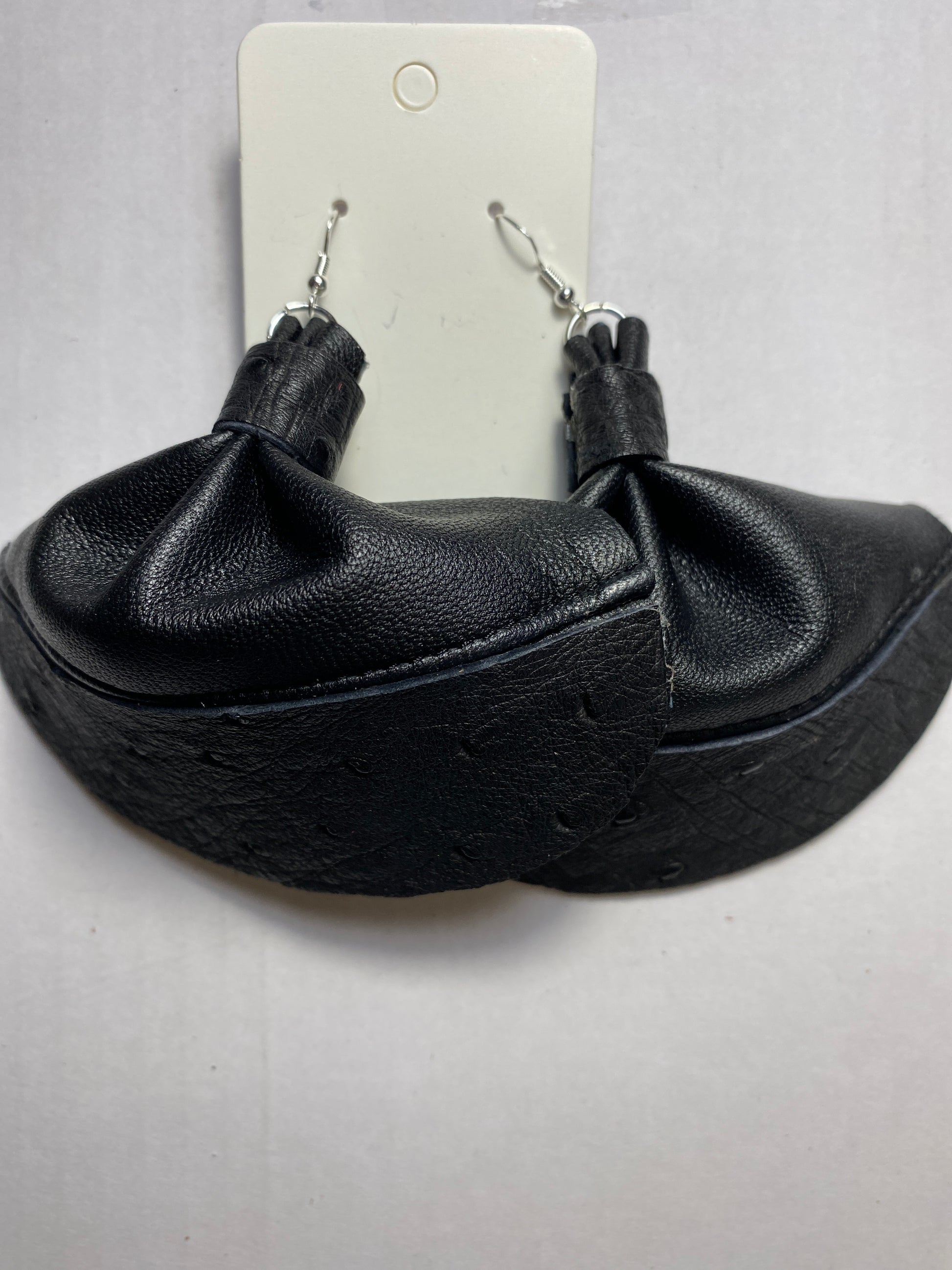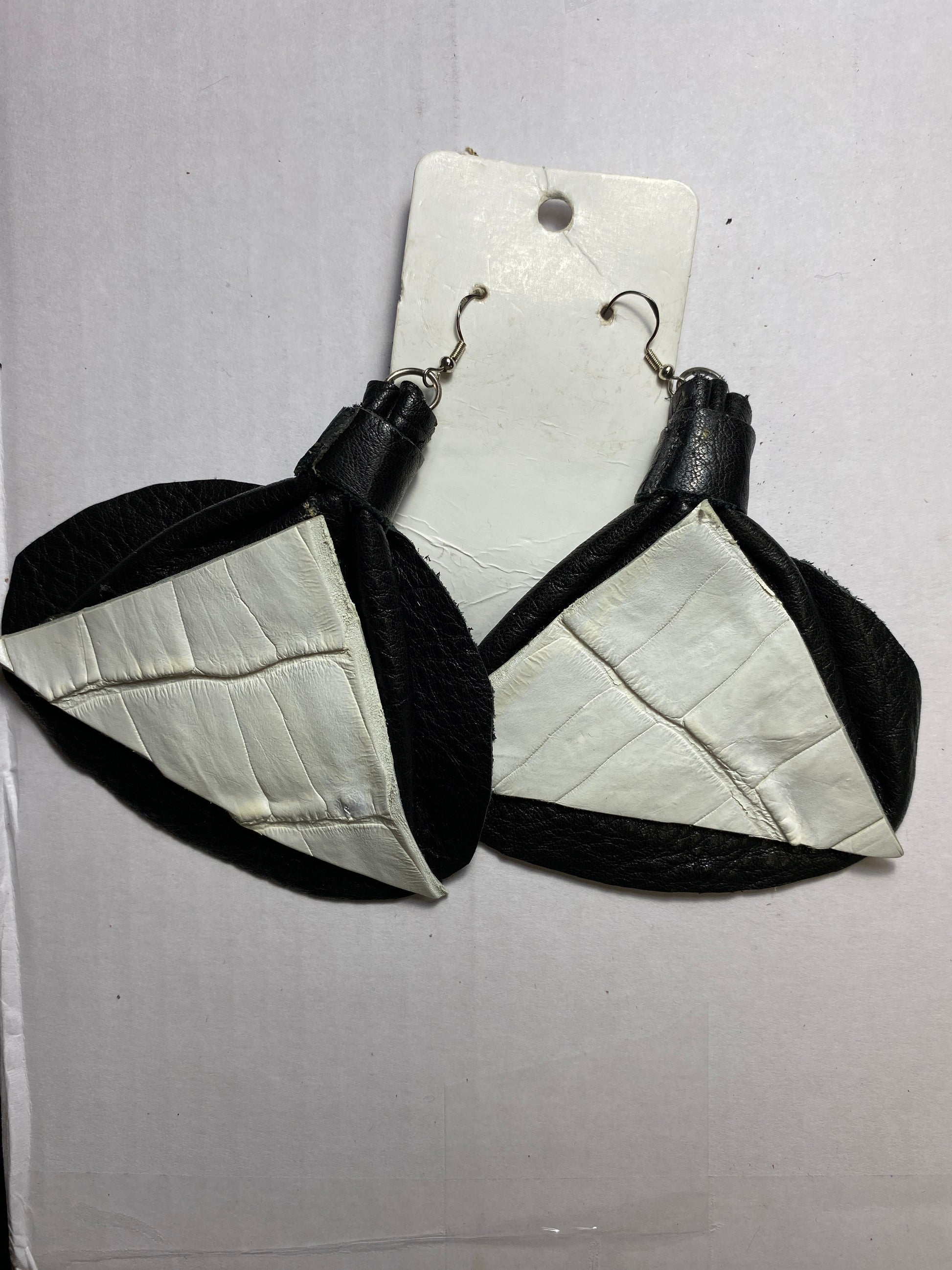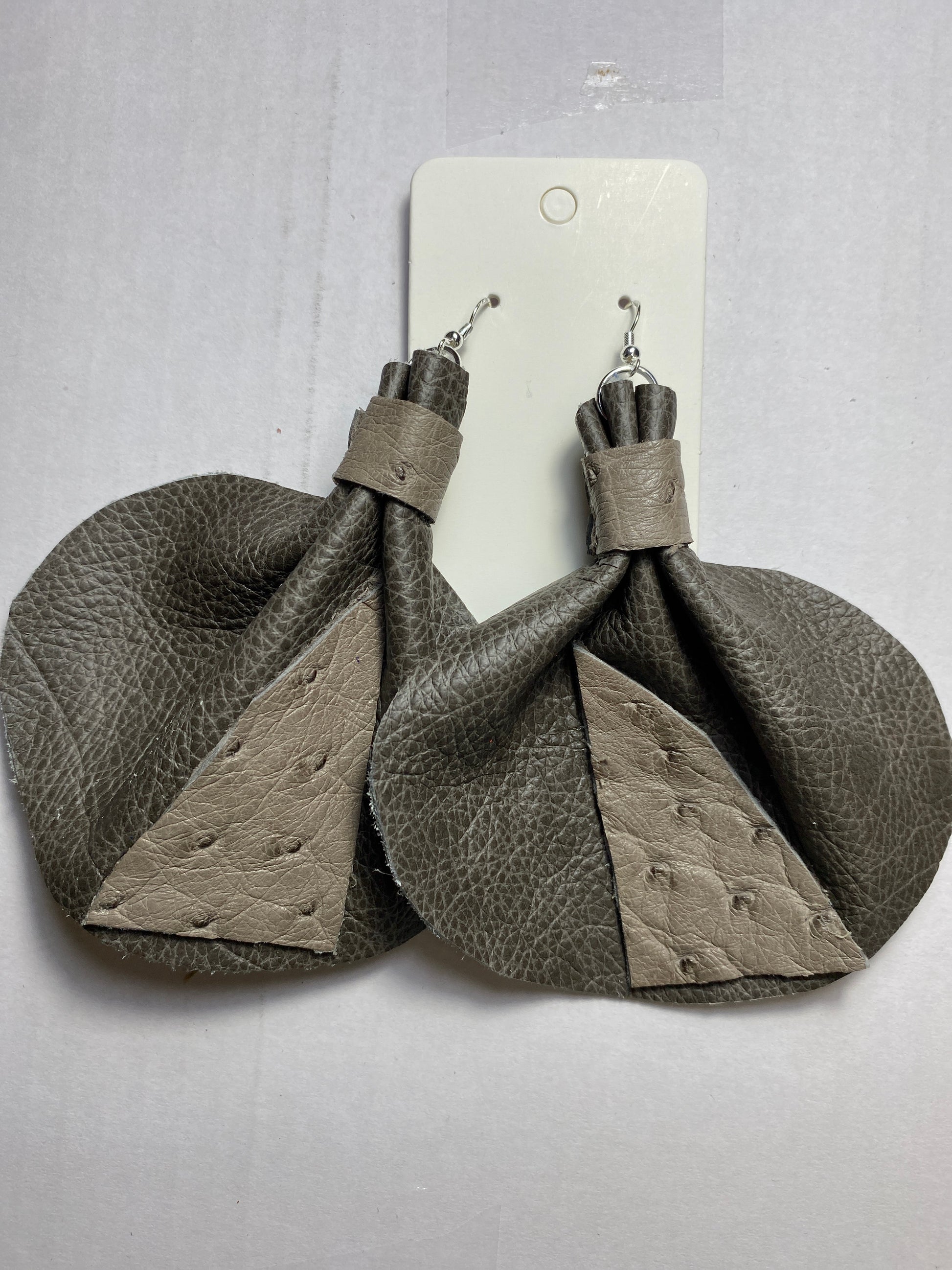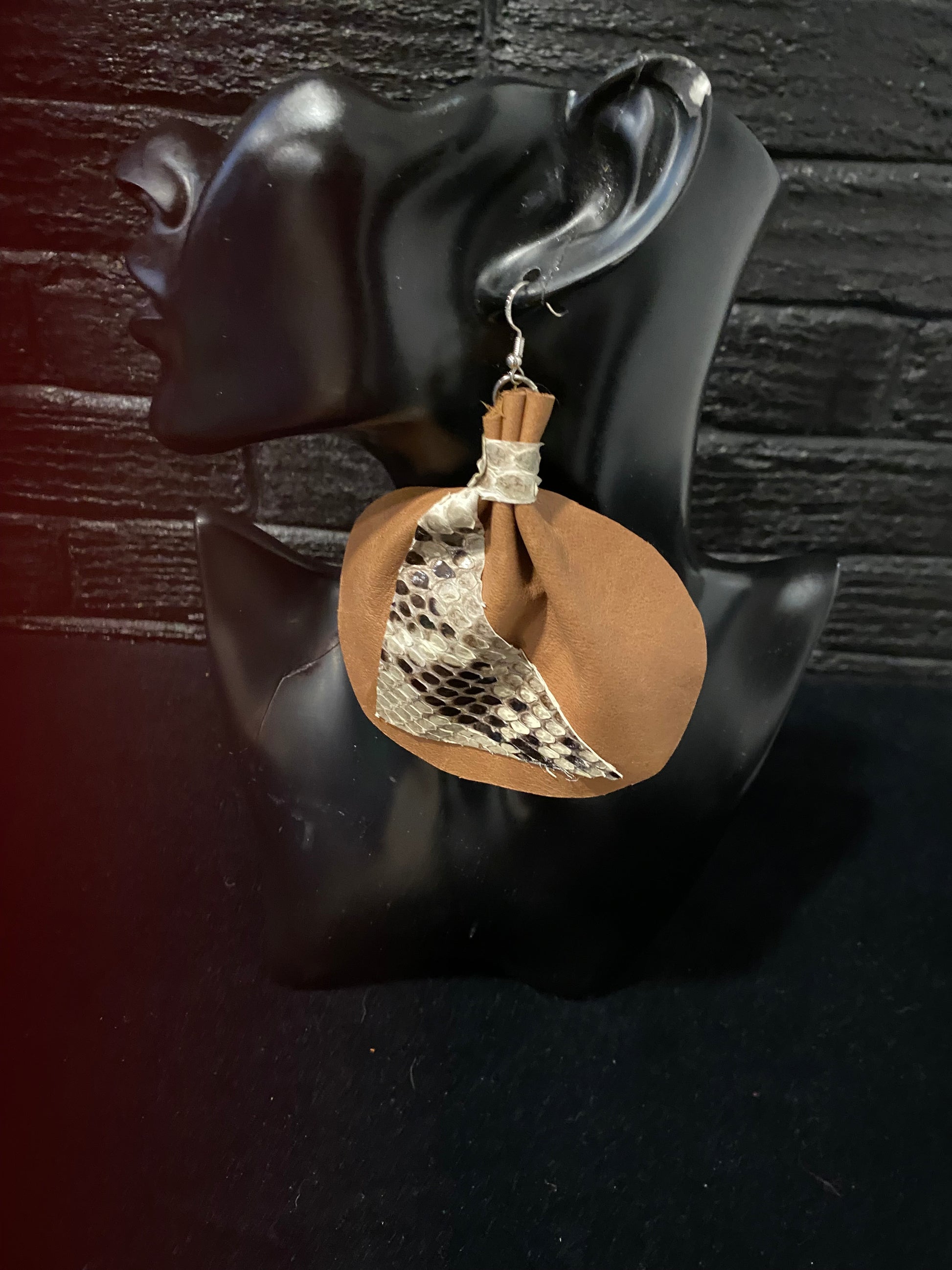 Uniquely one of a kind styles, handmade earrings out of leather trimmed with snake, alligator, pony, ostrich or textured and have sterling silver hooks