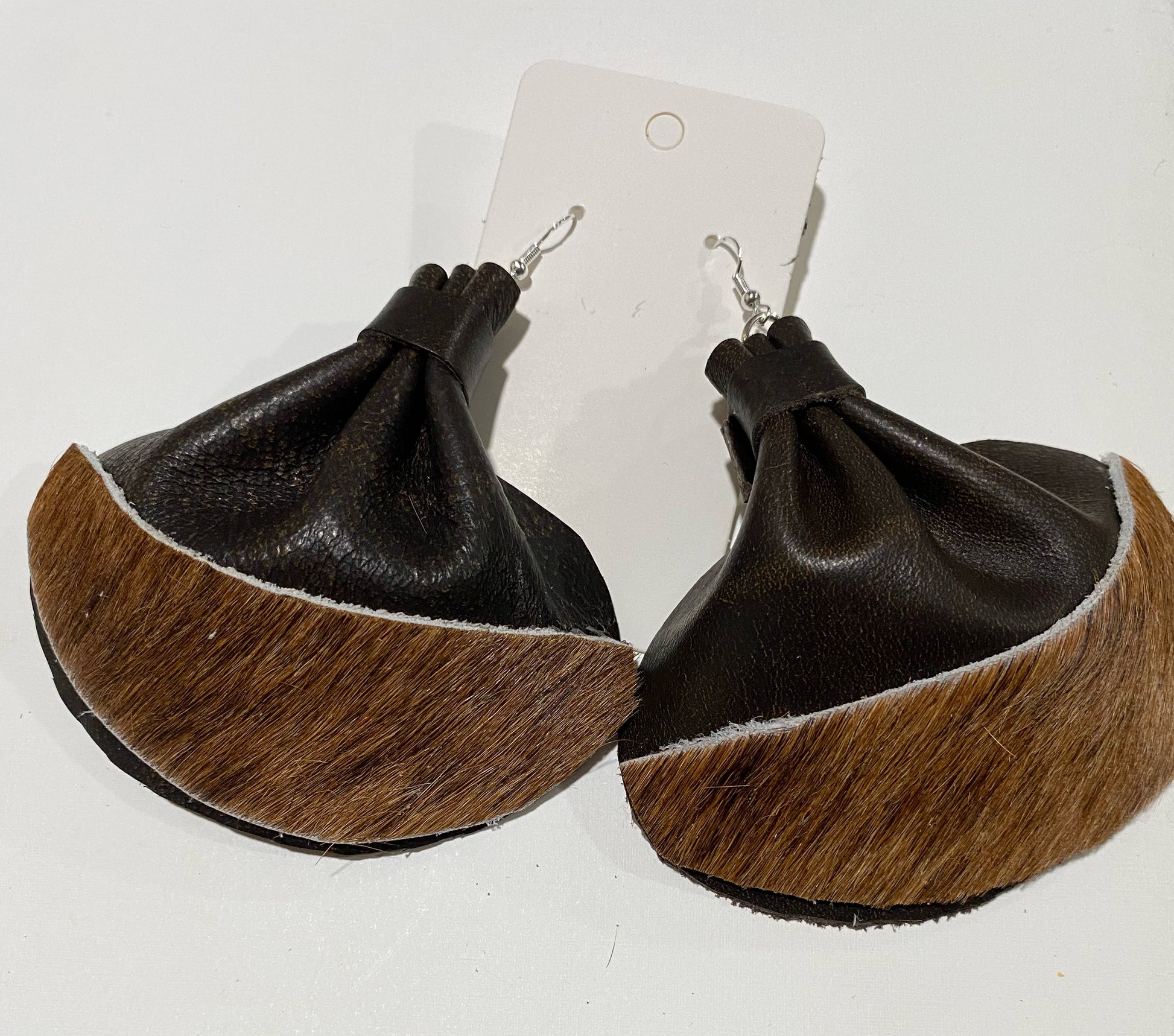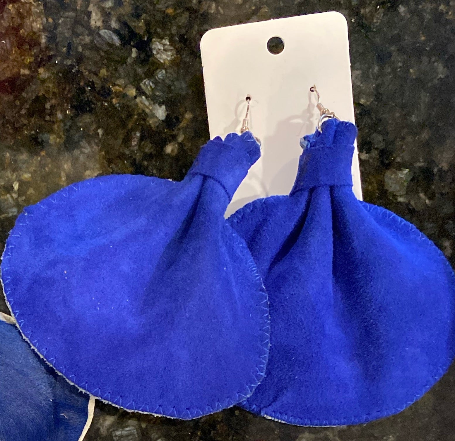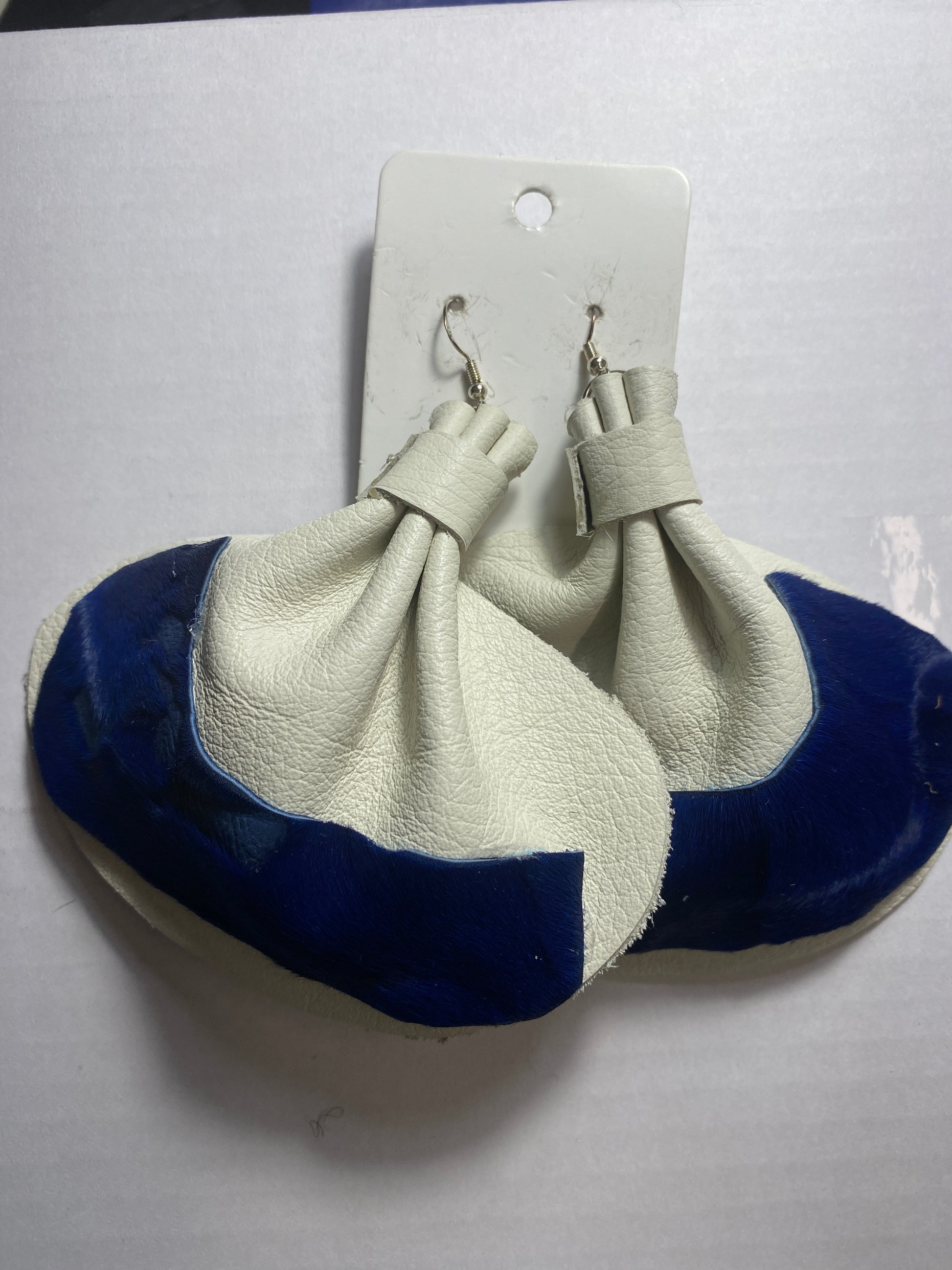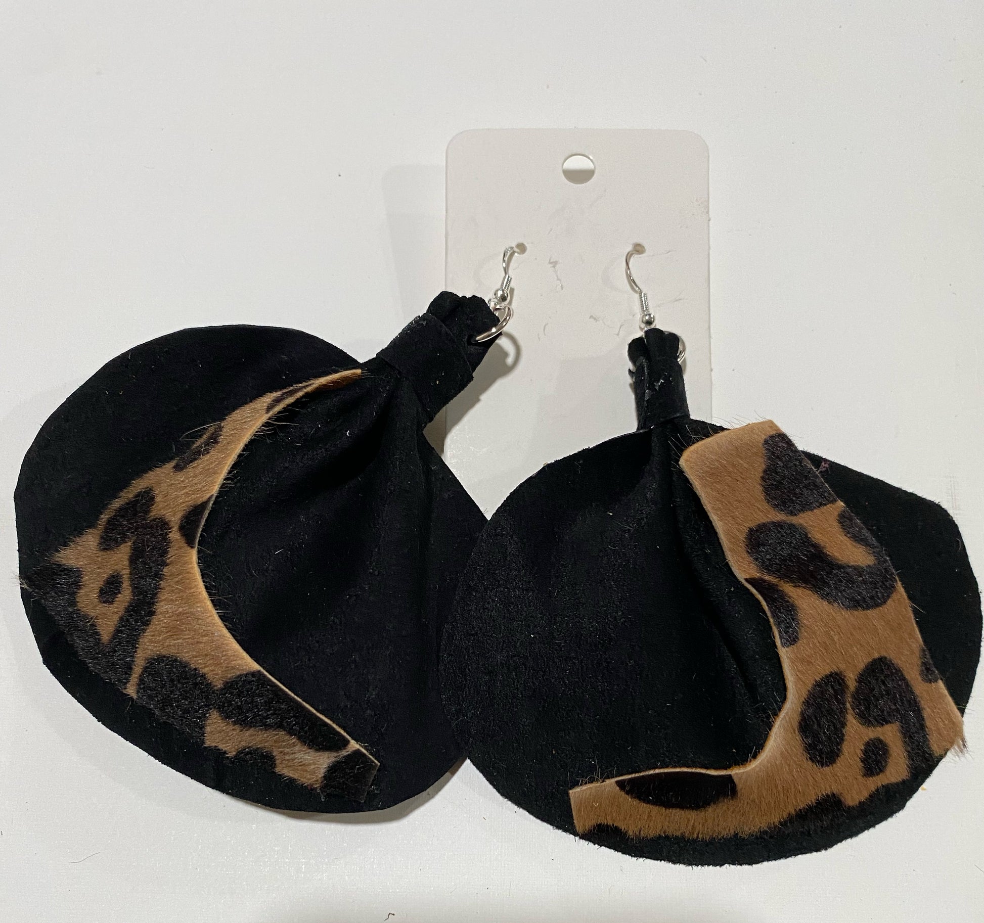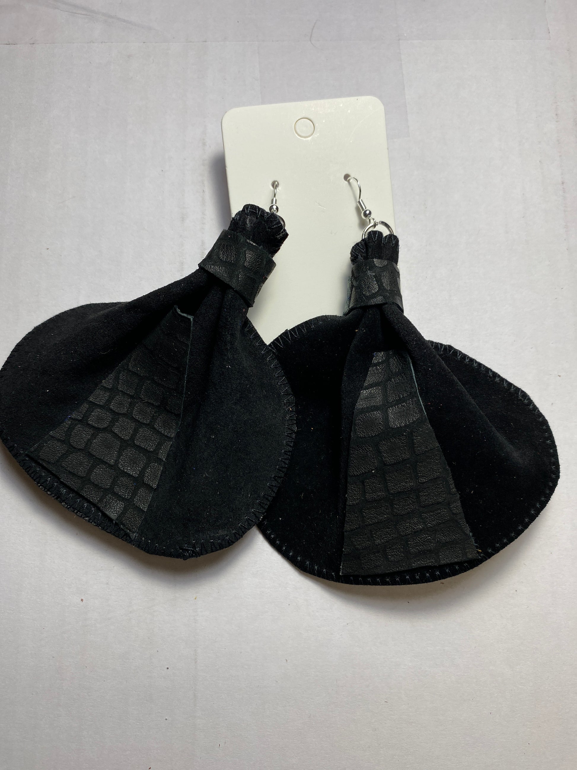 Uniquely one of a kind styles, handmade earrings out of leather trimmed with snake, alligator, pony, ostrich or textured and have sterling silver hooks