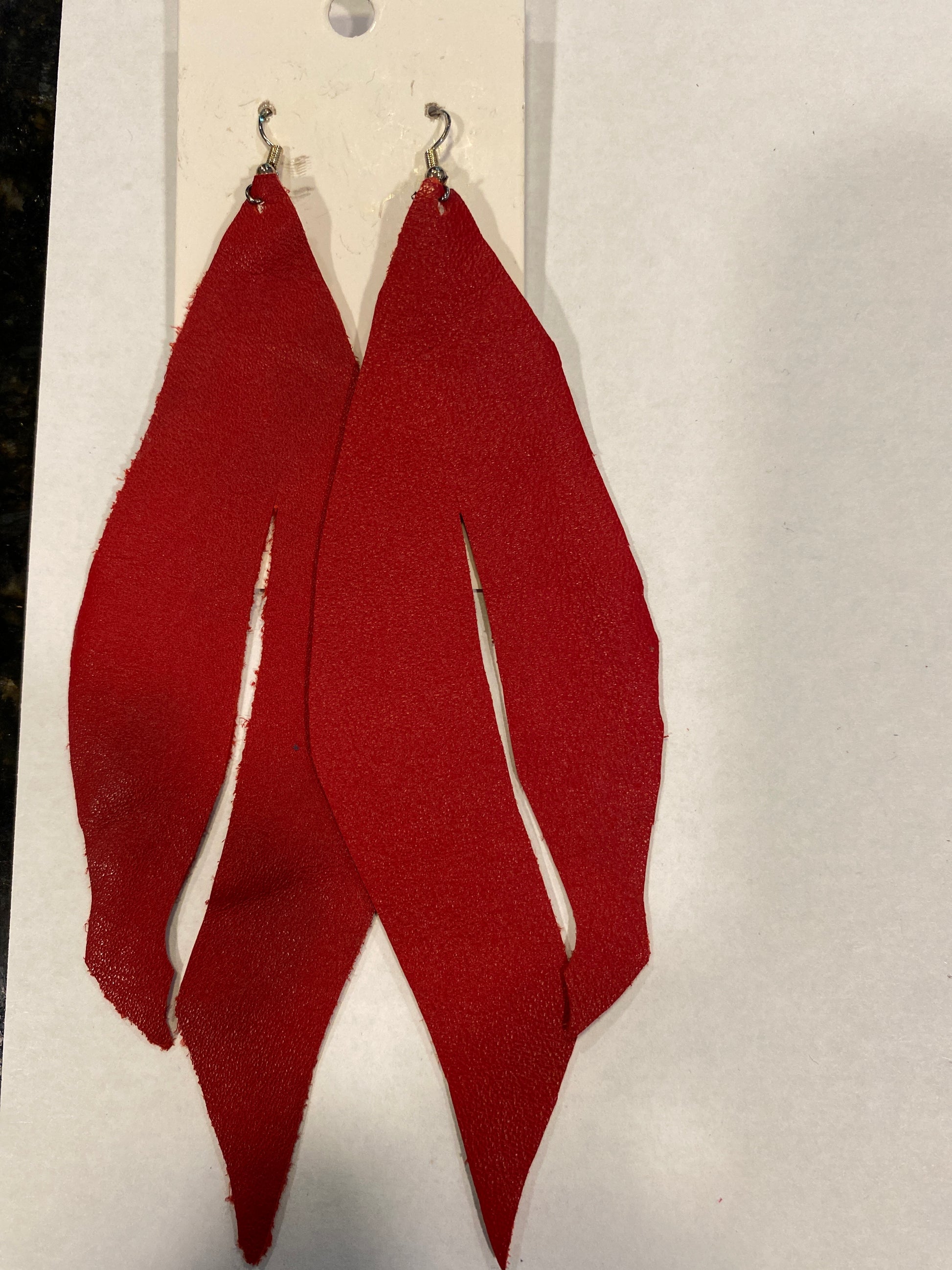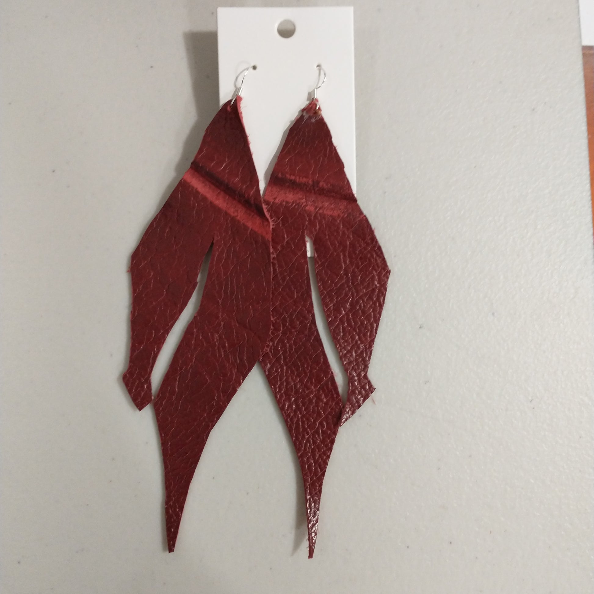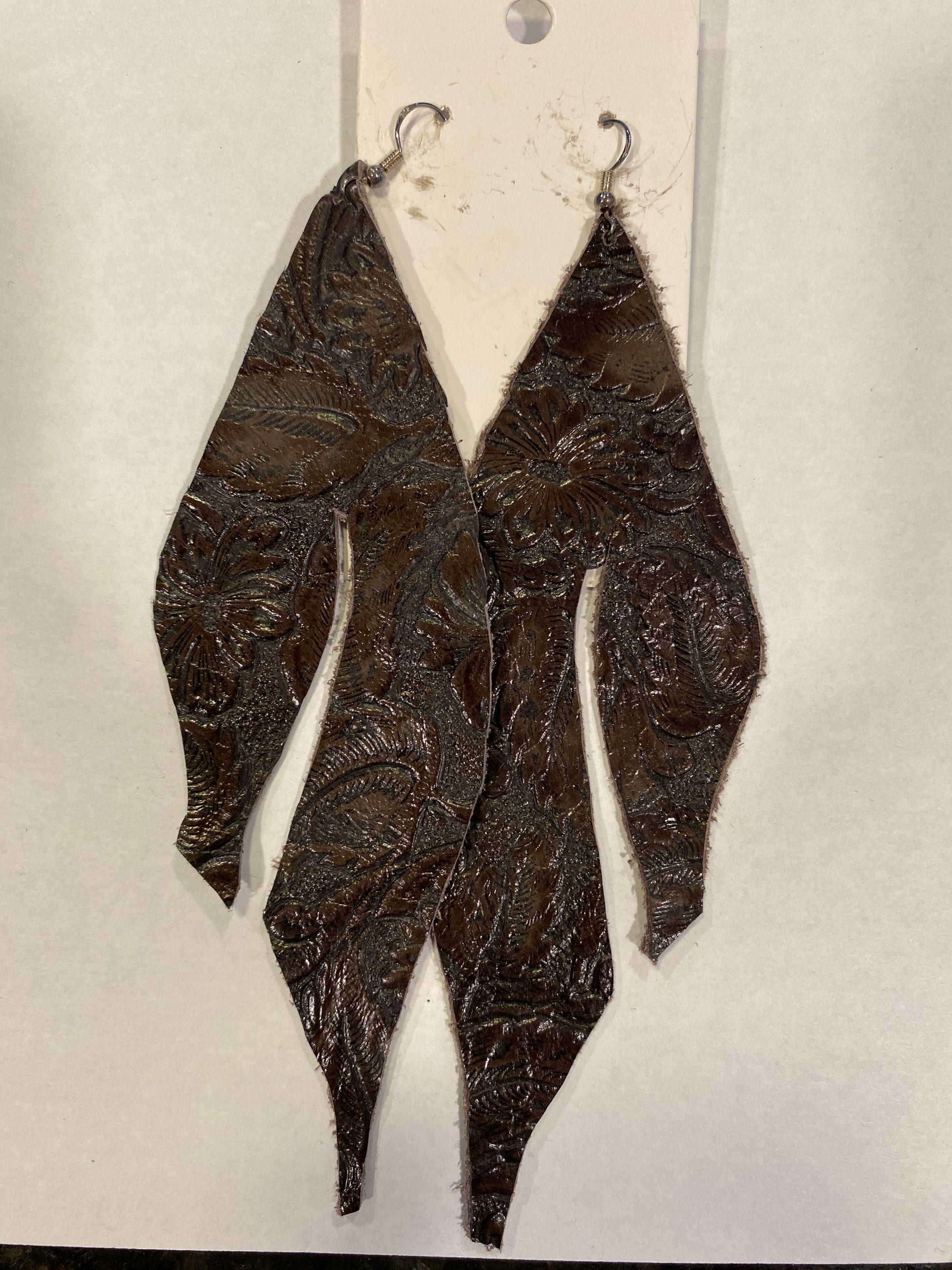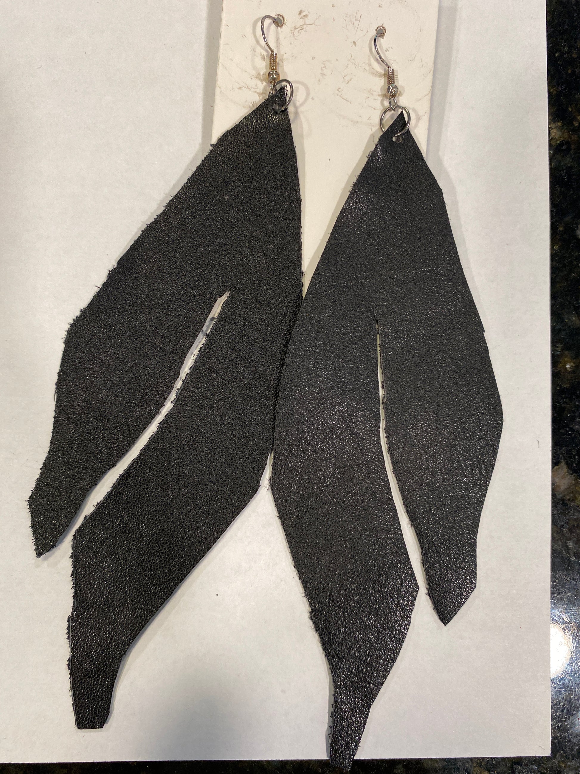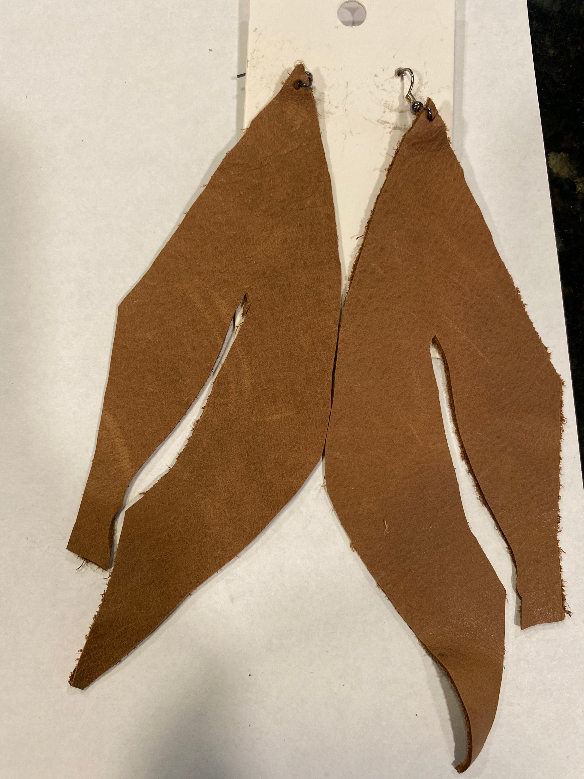 These styled earrings were influenced by boot art and are handmade by Sherry. Made of genuine suede and leather with sterling silver hooks, they are lightweight and soft.