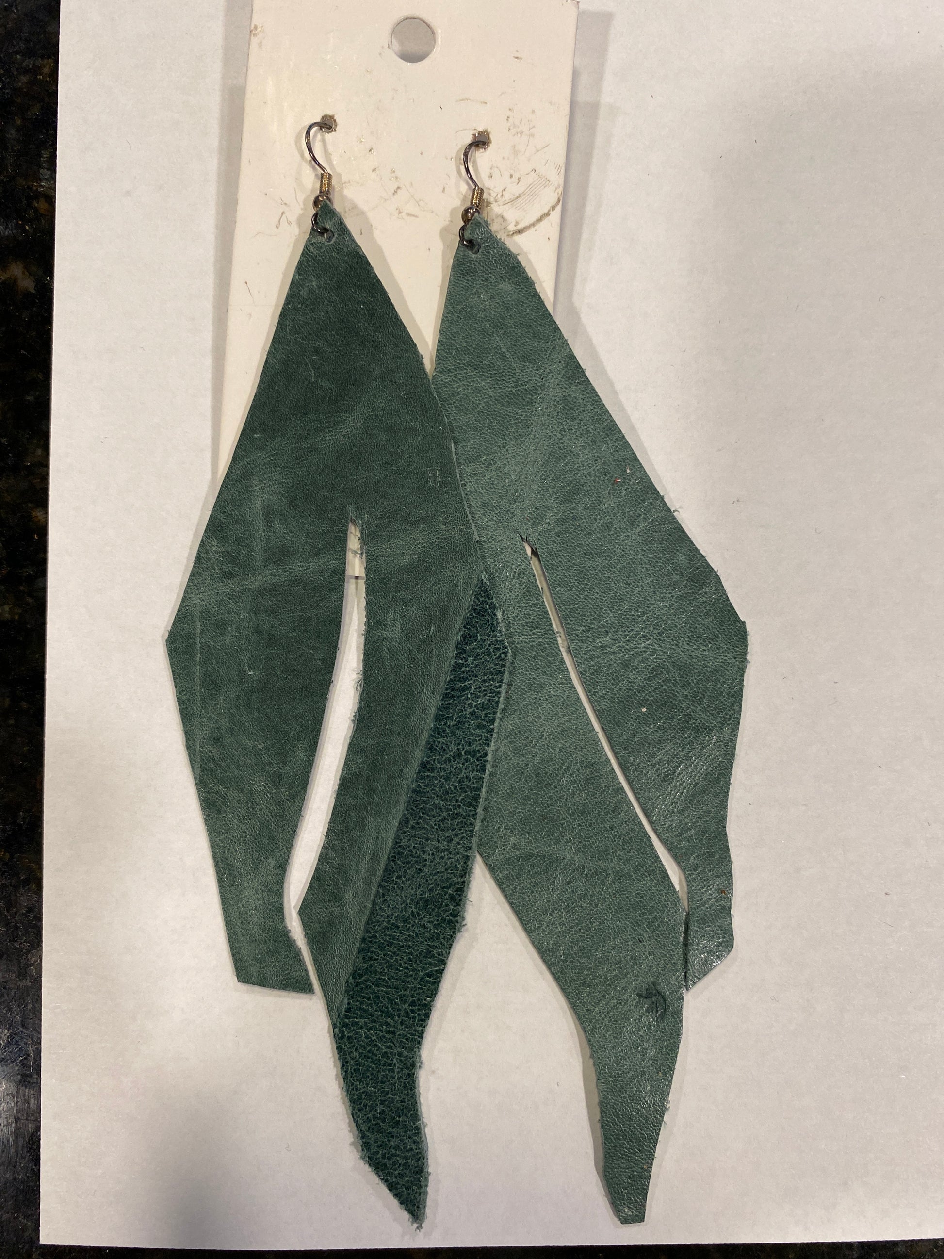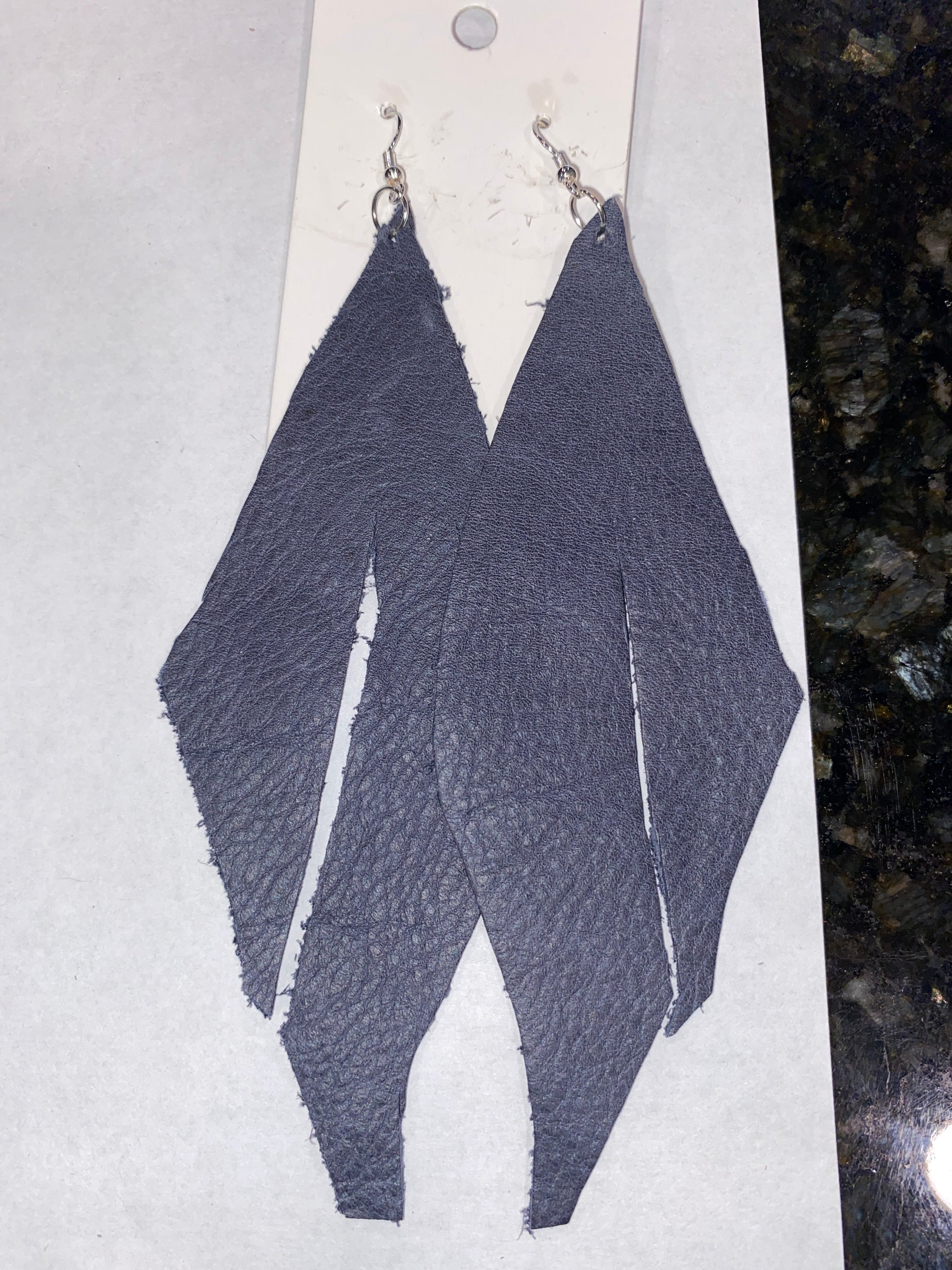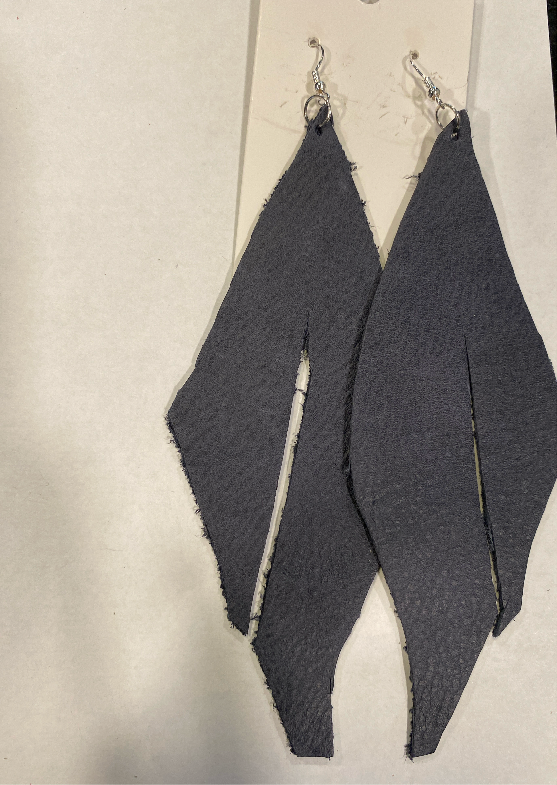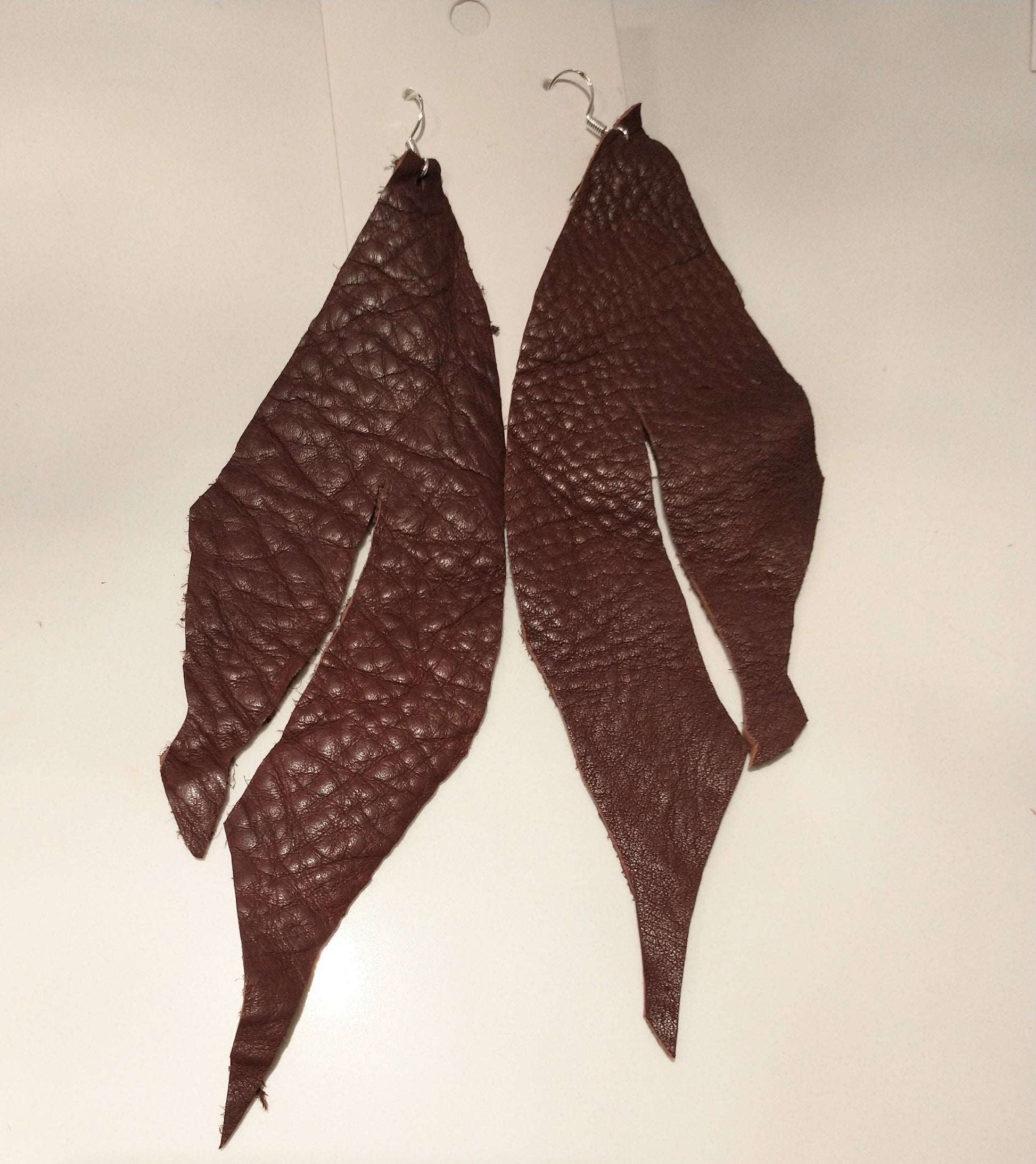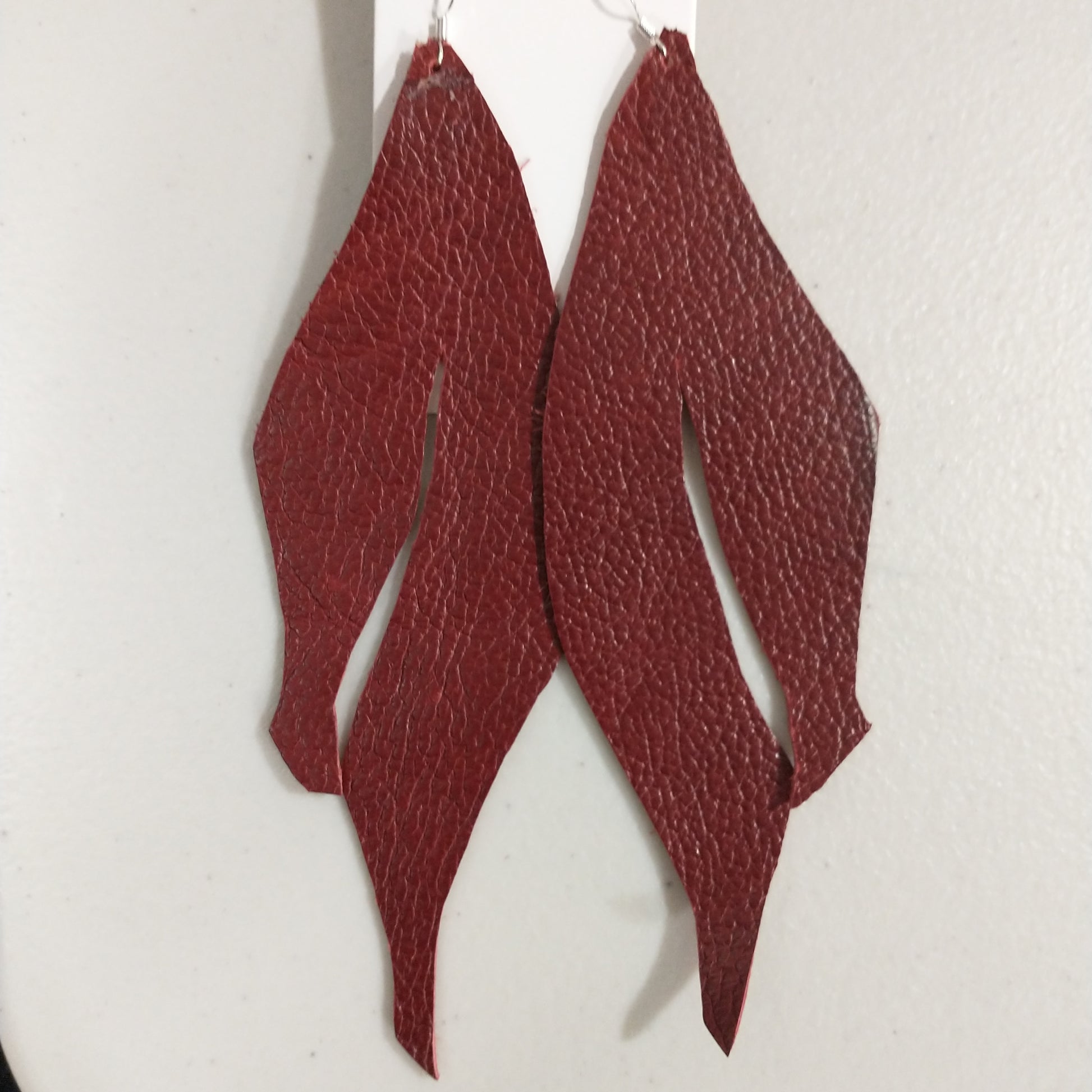 These styled earrings were influenced by boot art and are handmade by Sherry. Made of genuine suede and leather with sterling silver hooks, they are lightweight and soft.