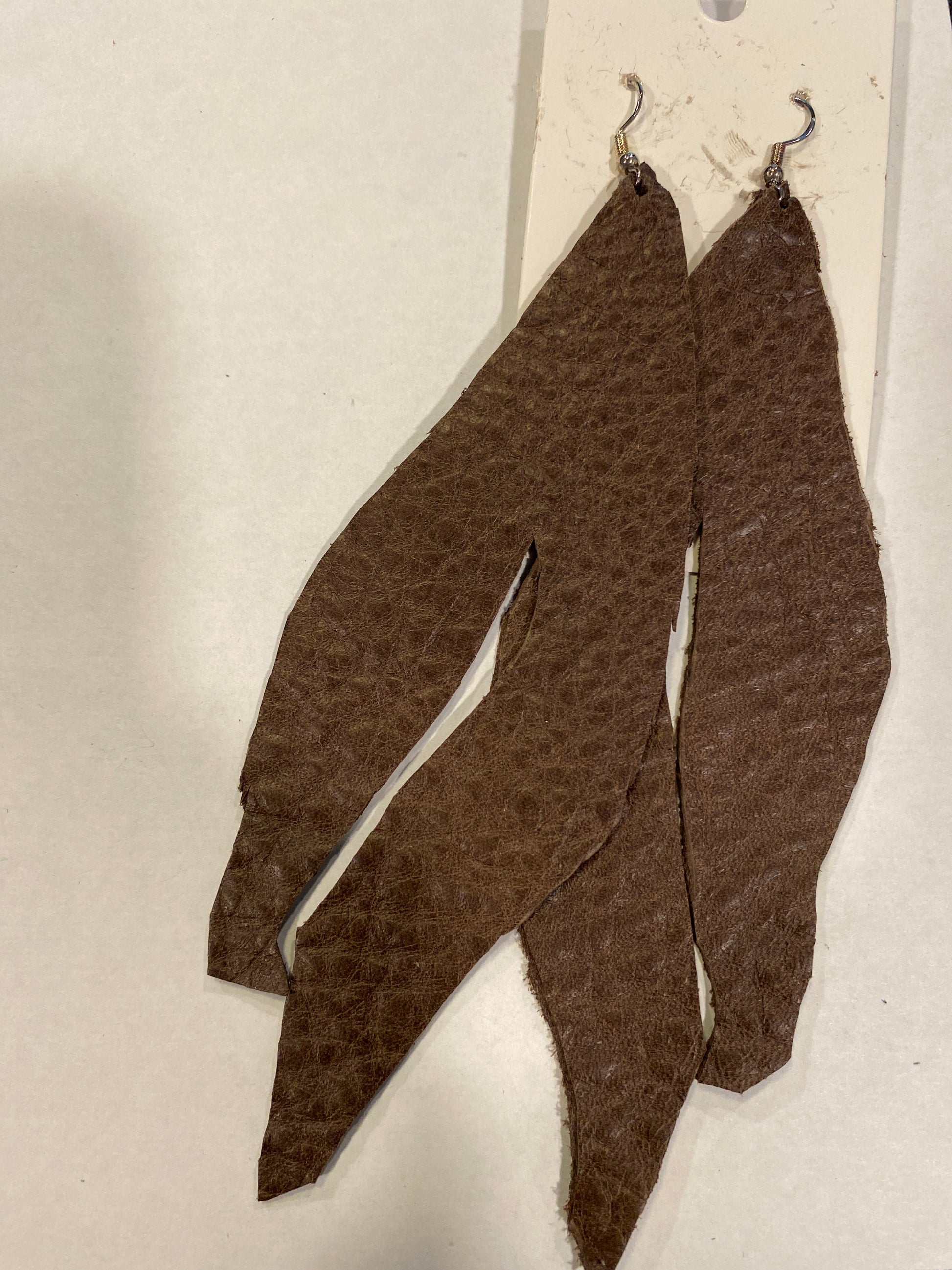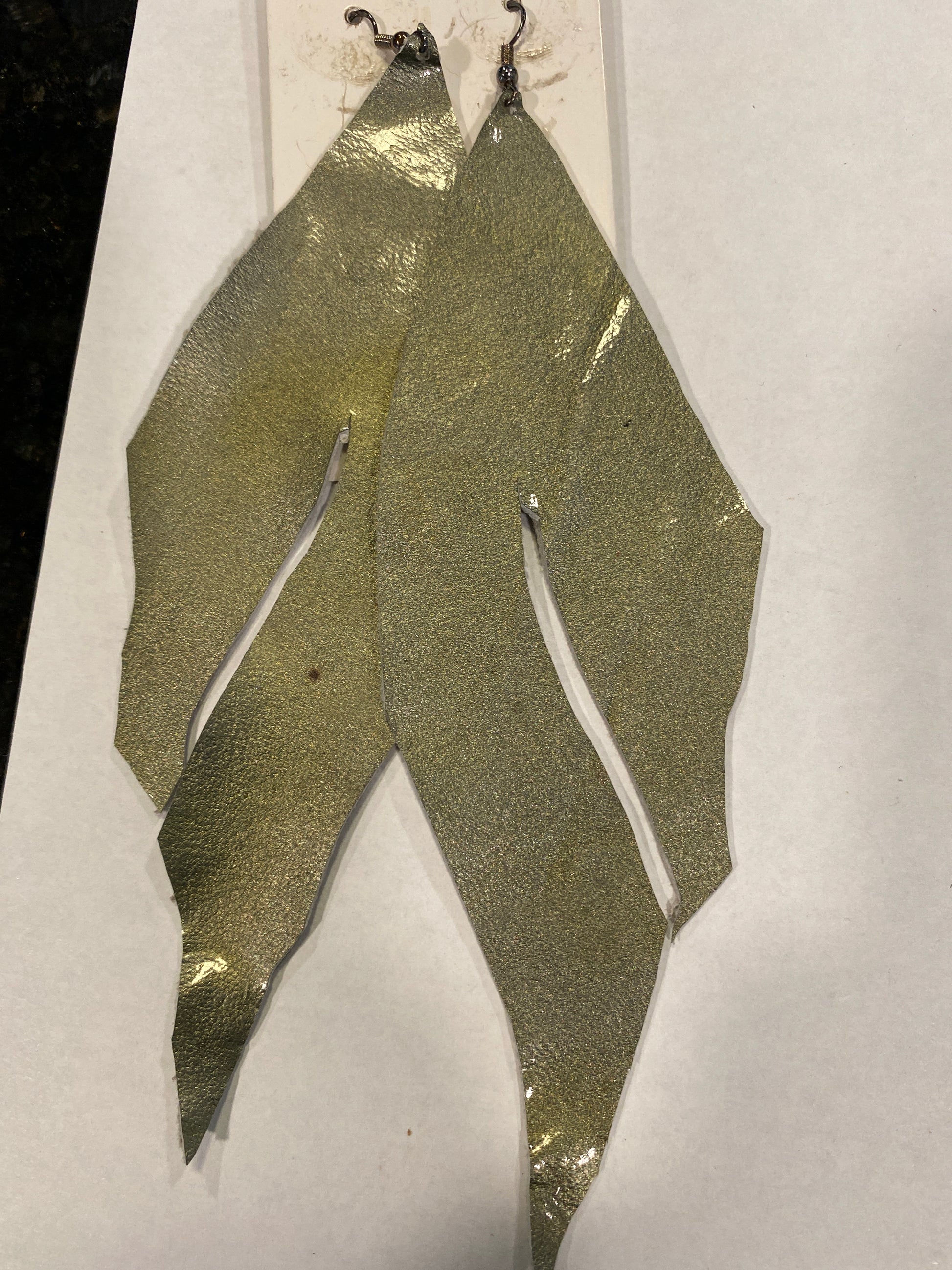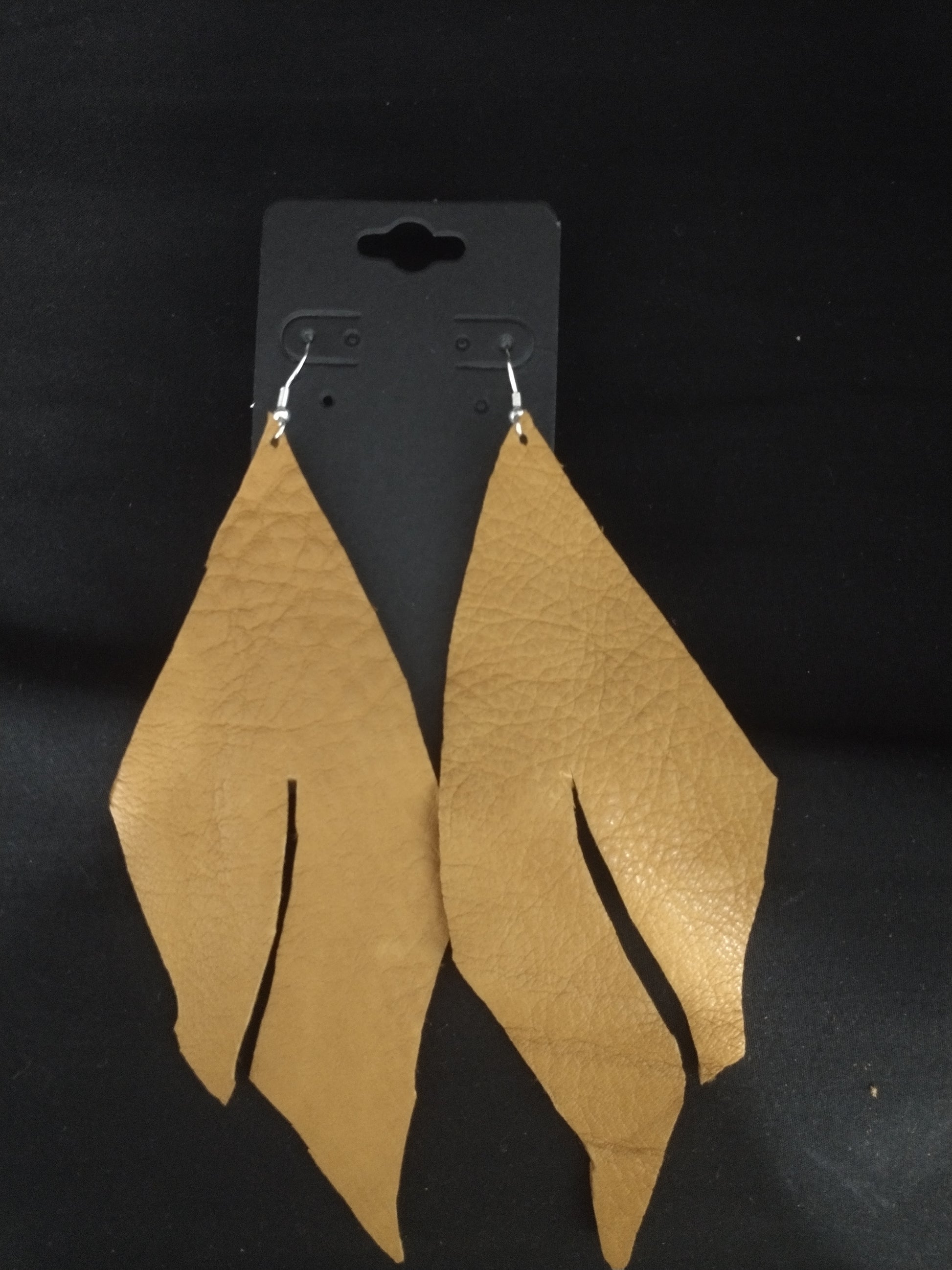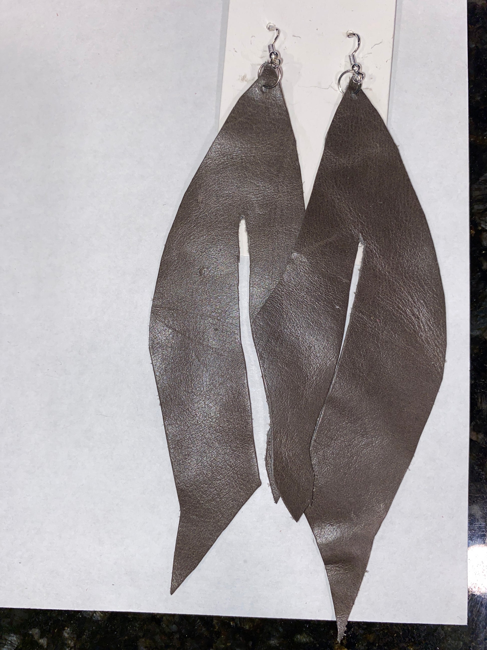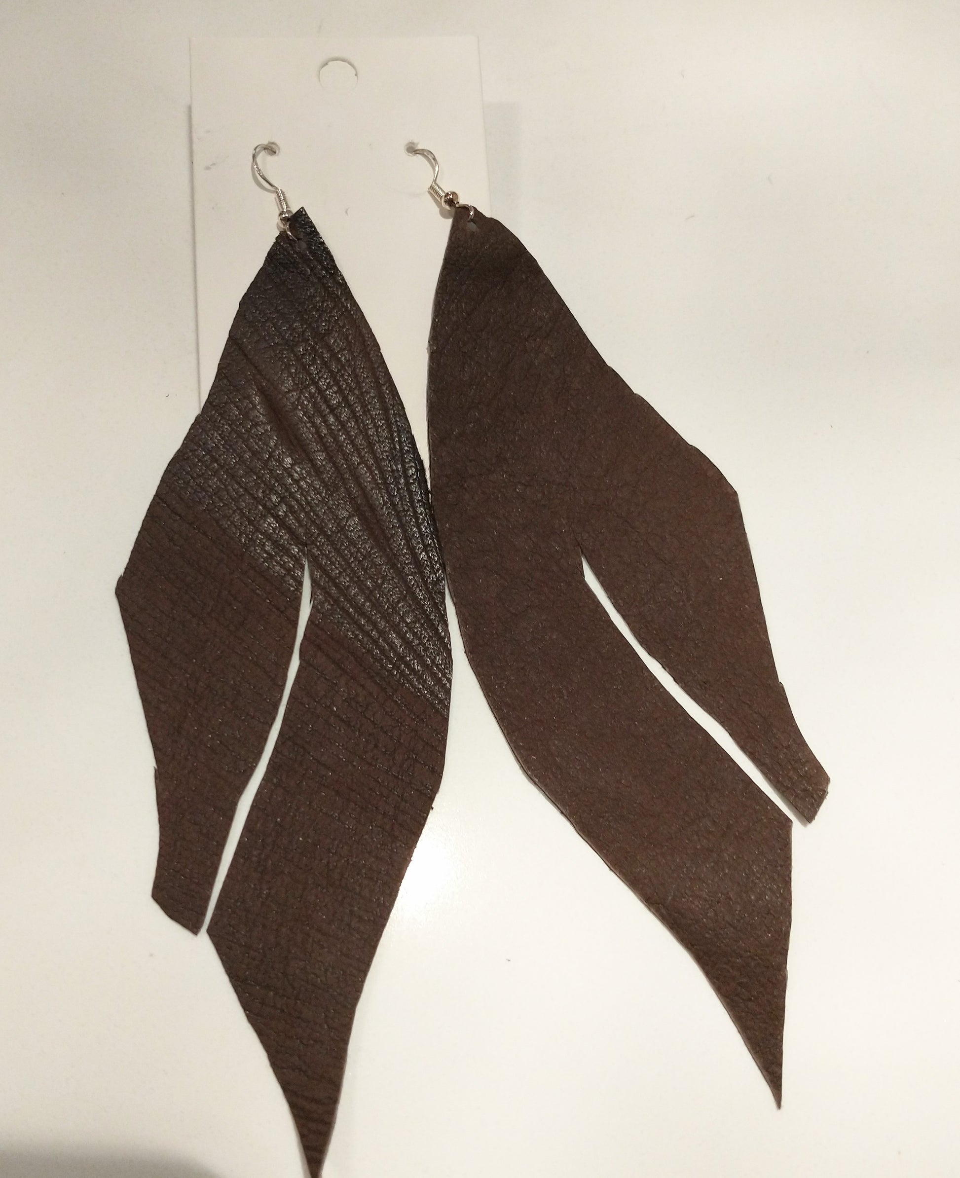 These styled earrings were influenced by boot art and are handmade by Sherry. Made of genuine suede and leather with sterling silver hooks, they are lightweight and soft.