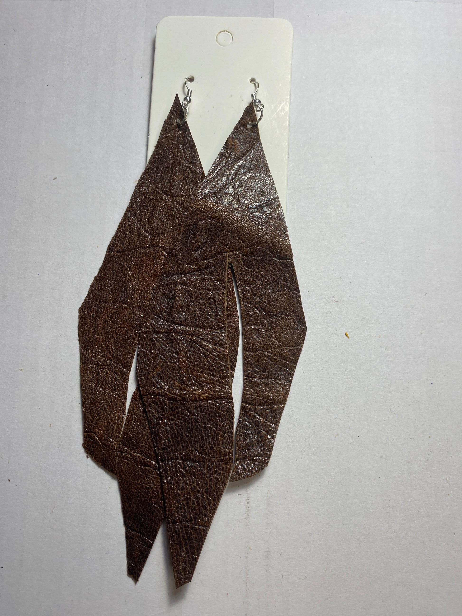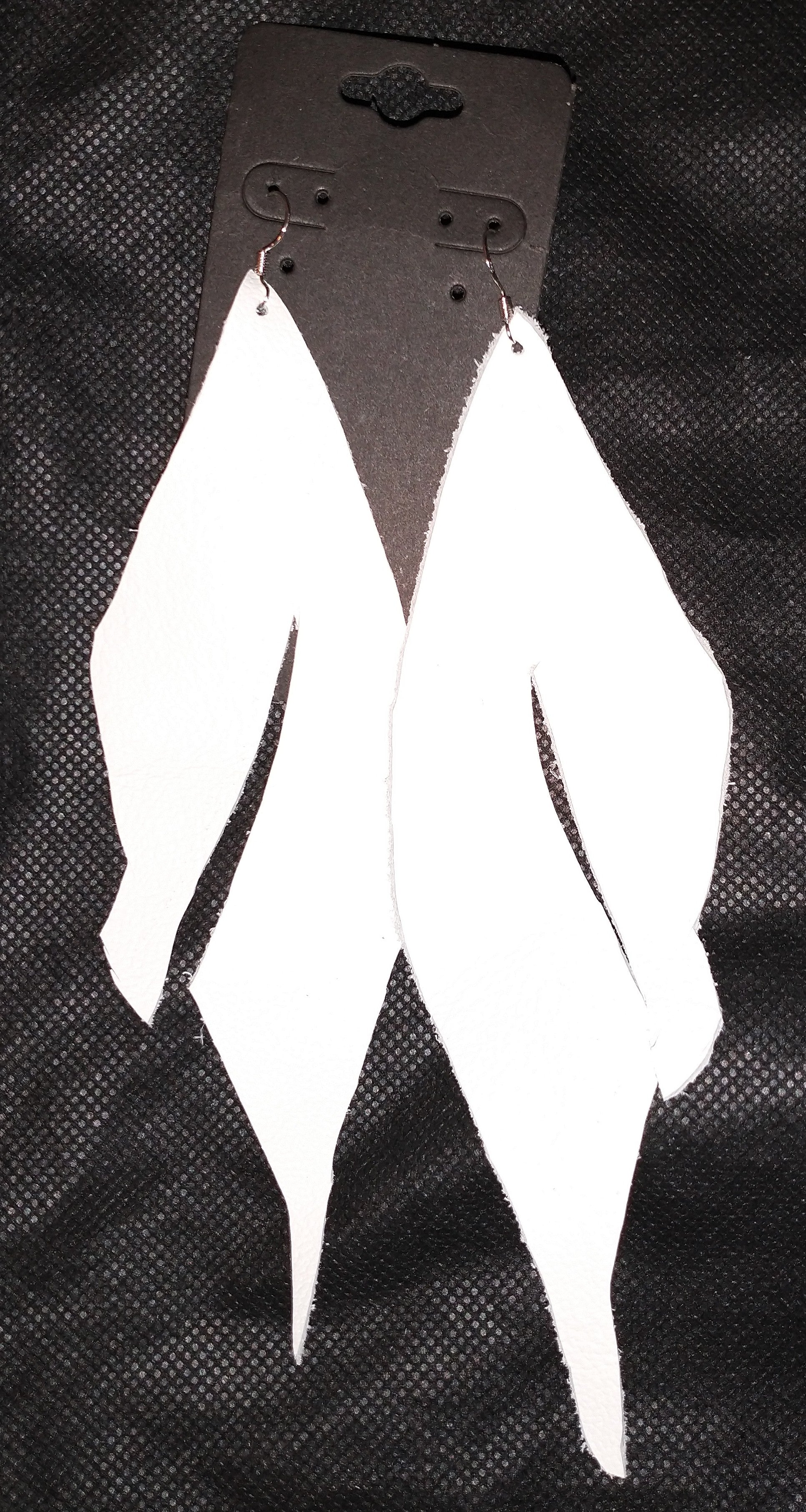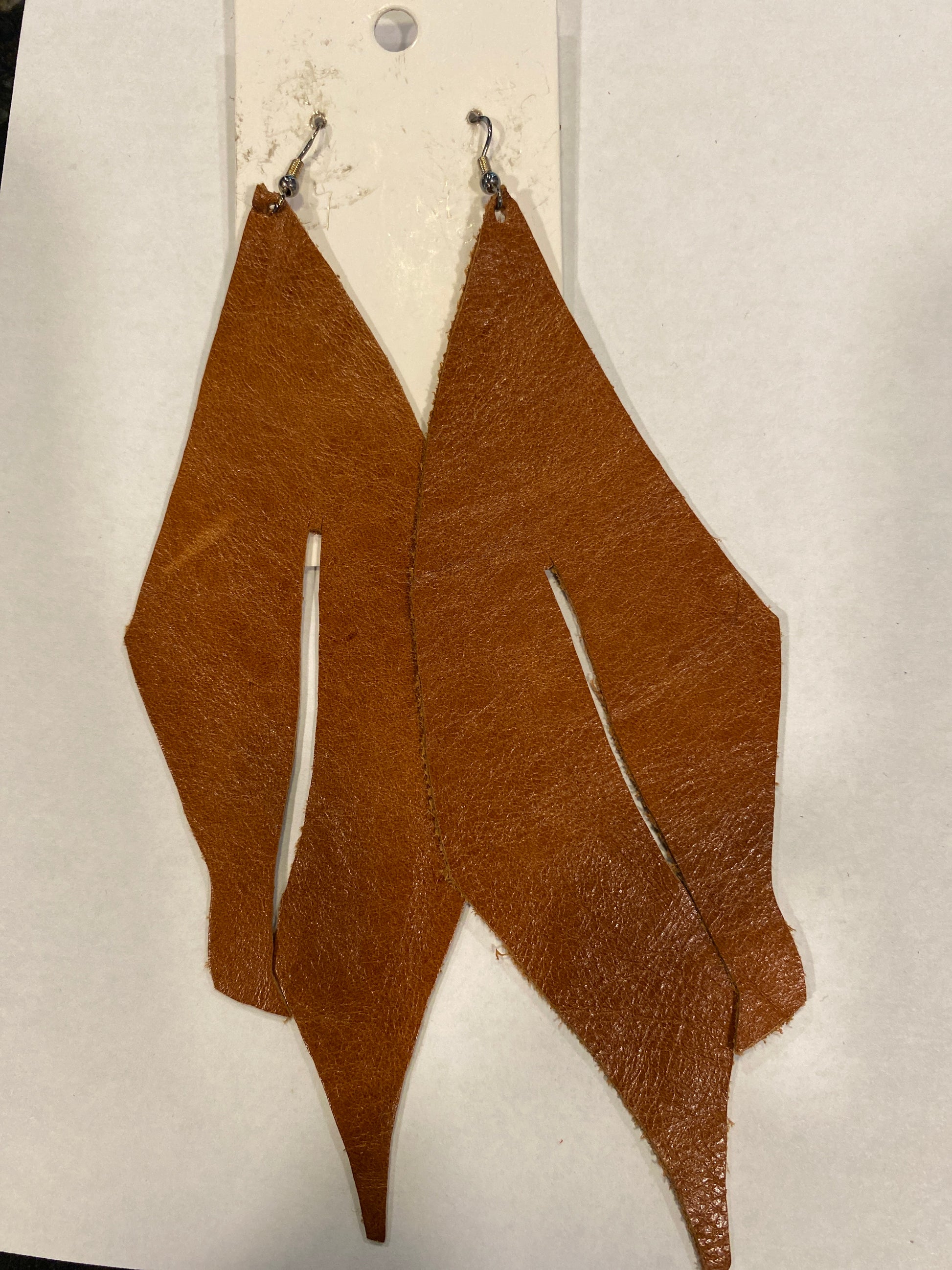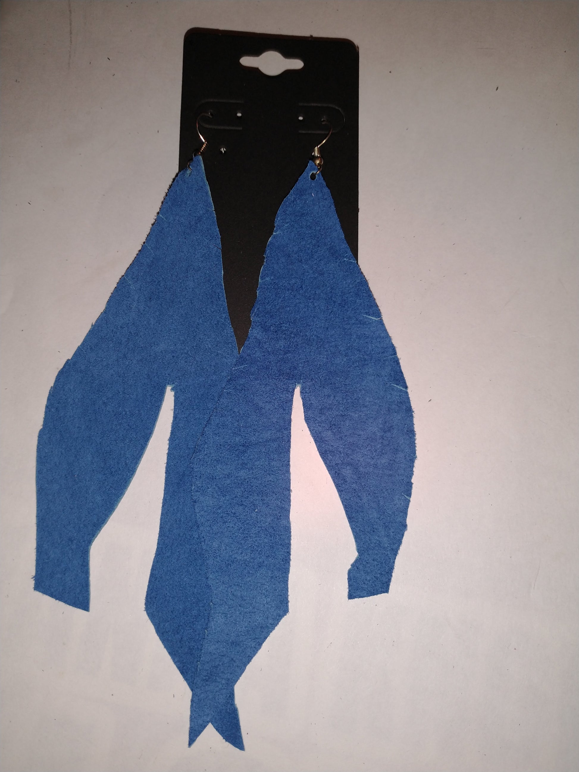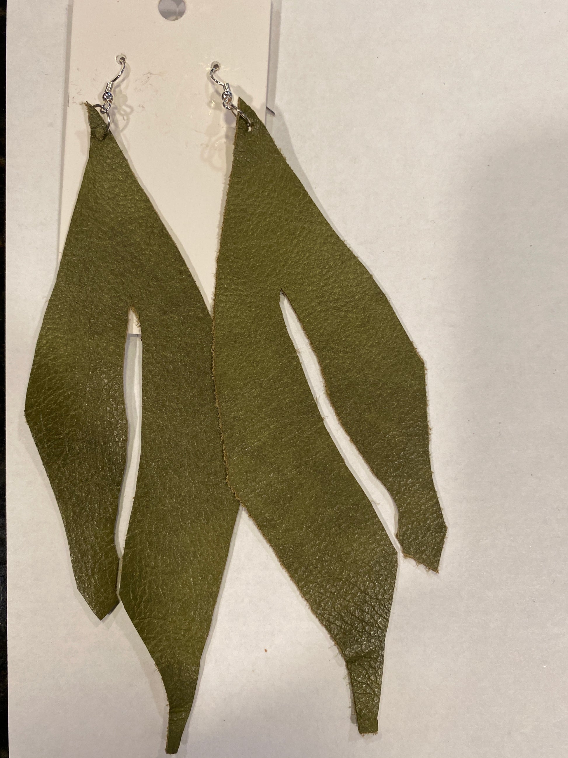 These styled earrings were influenced by boot art and are handmade by Sherry. Made of genuine suede and leather with sterling silver hooks, they are lightweight and soft.