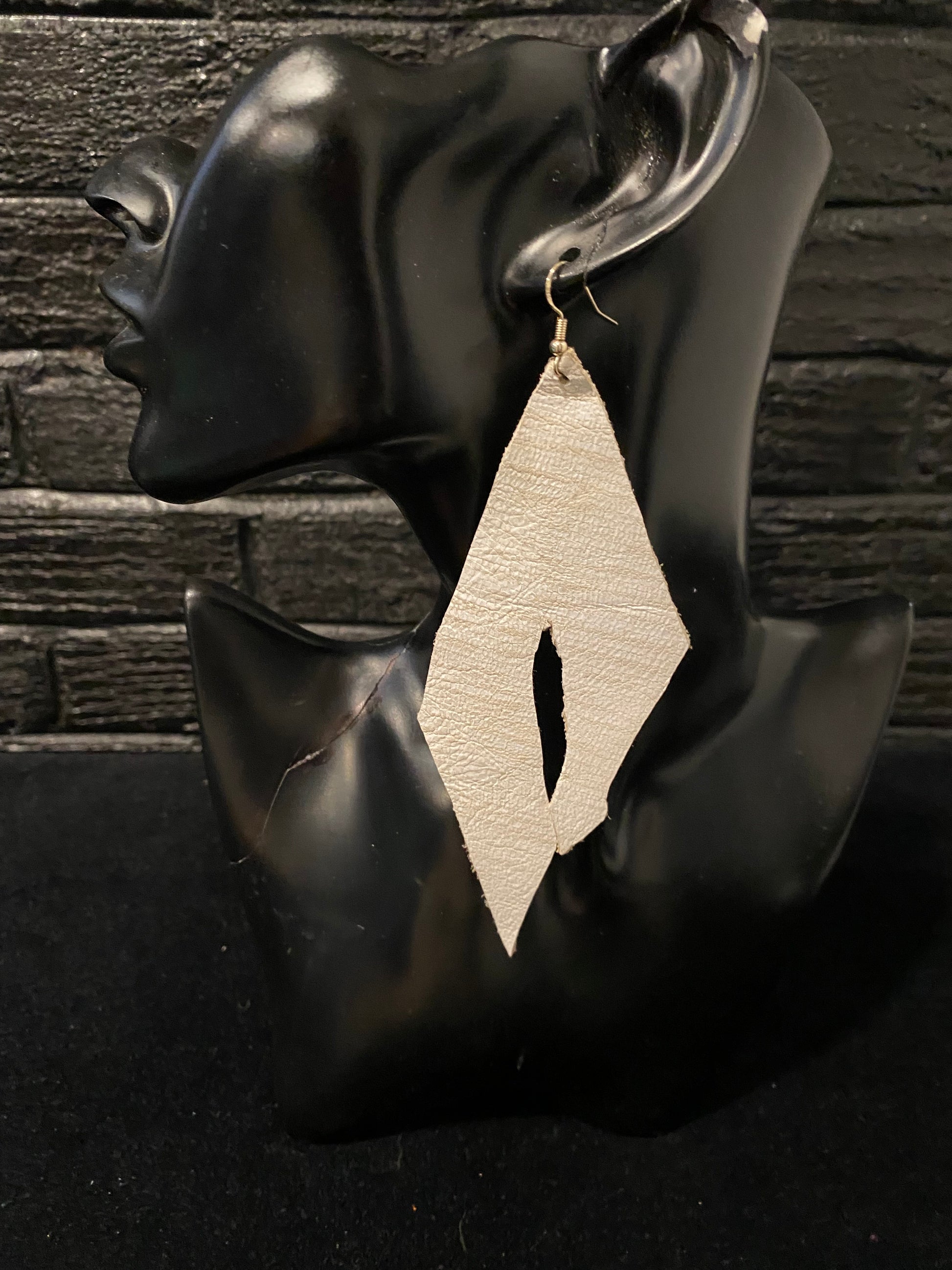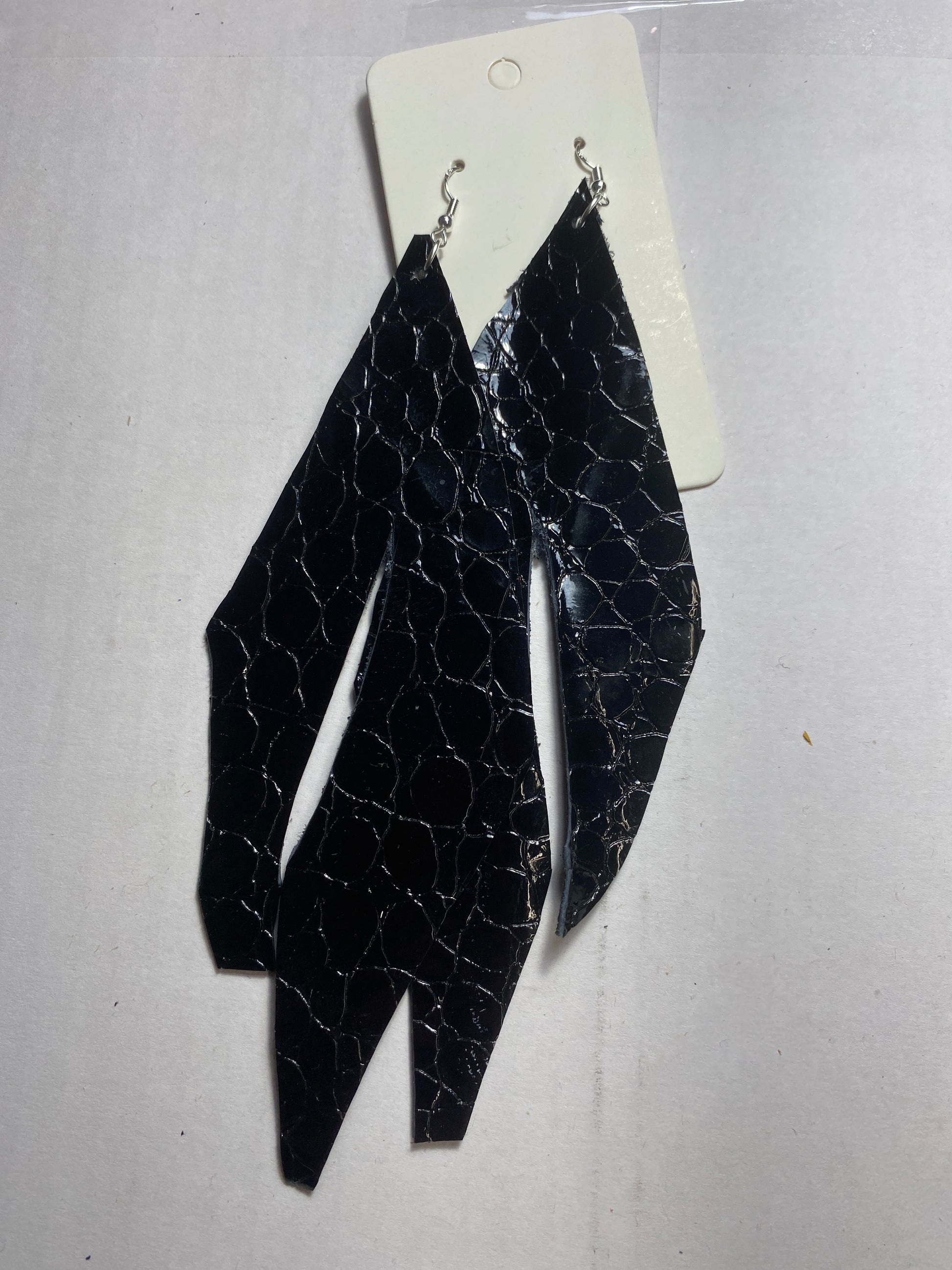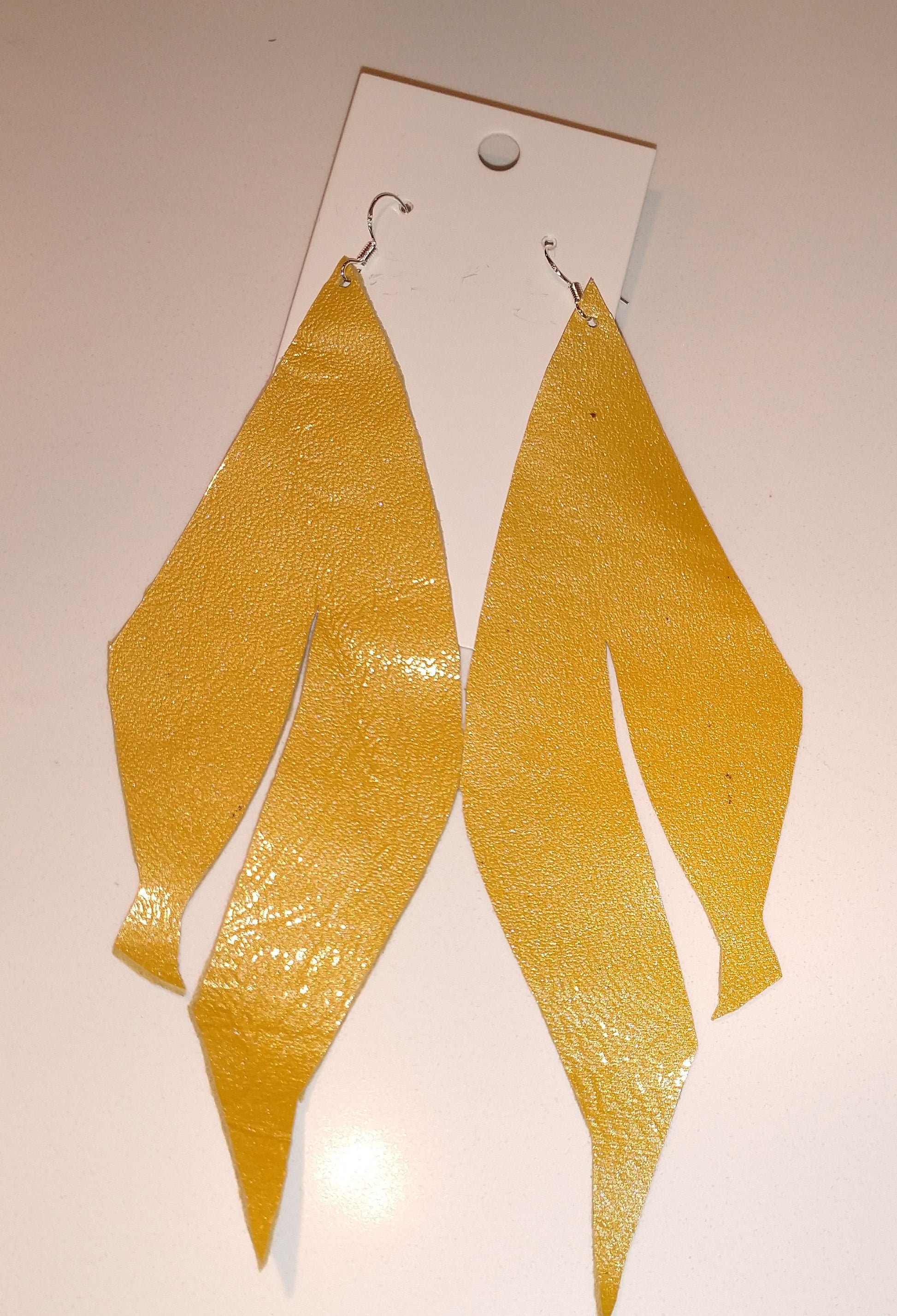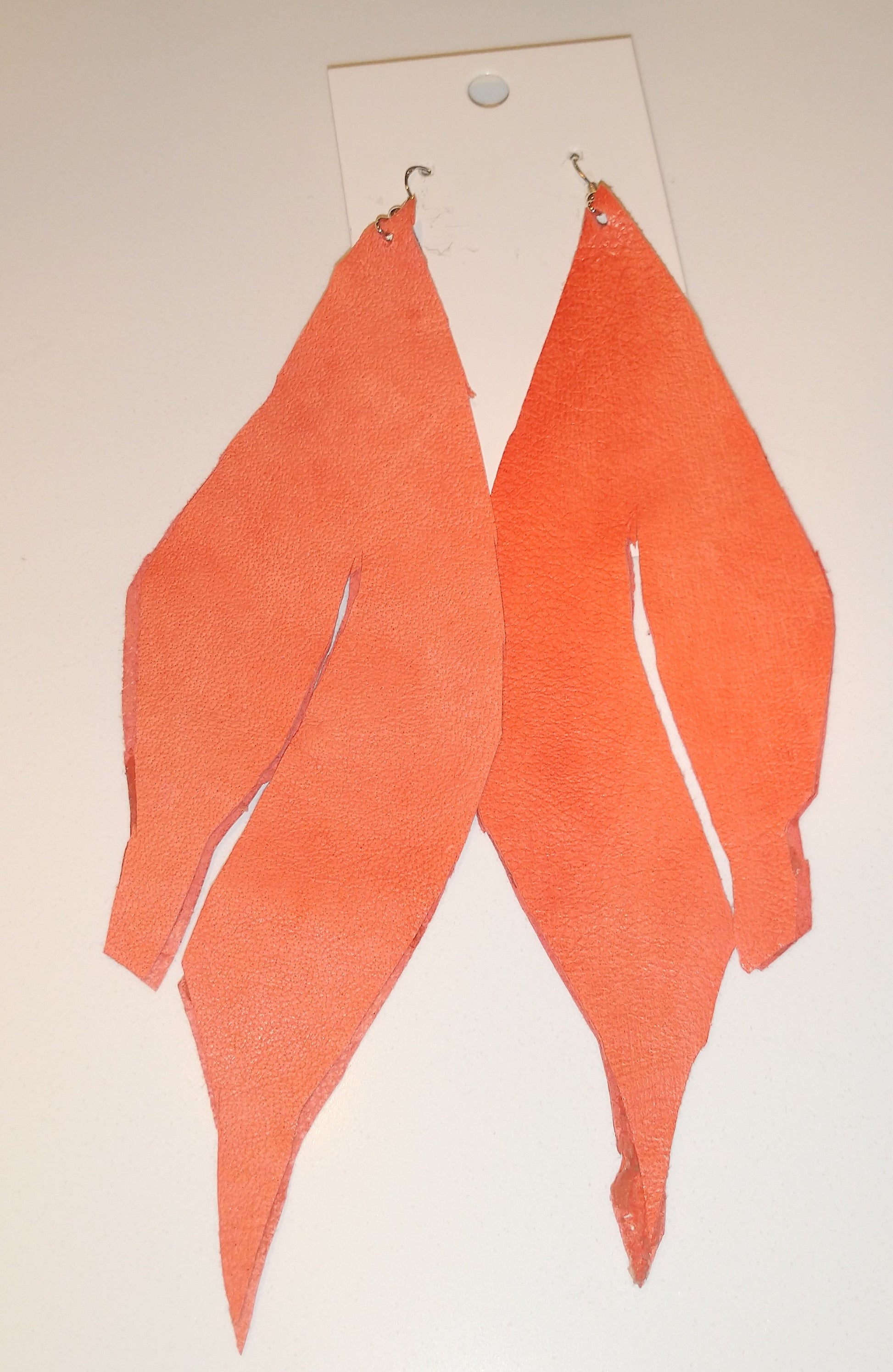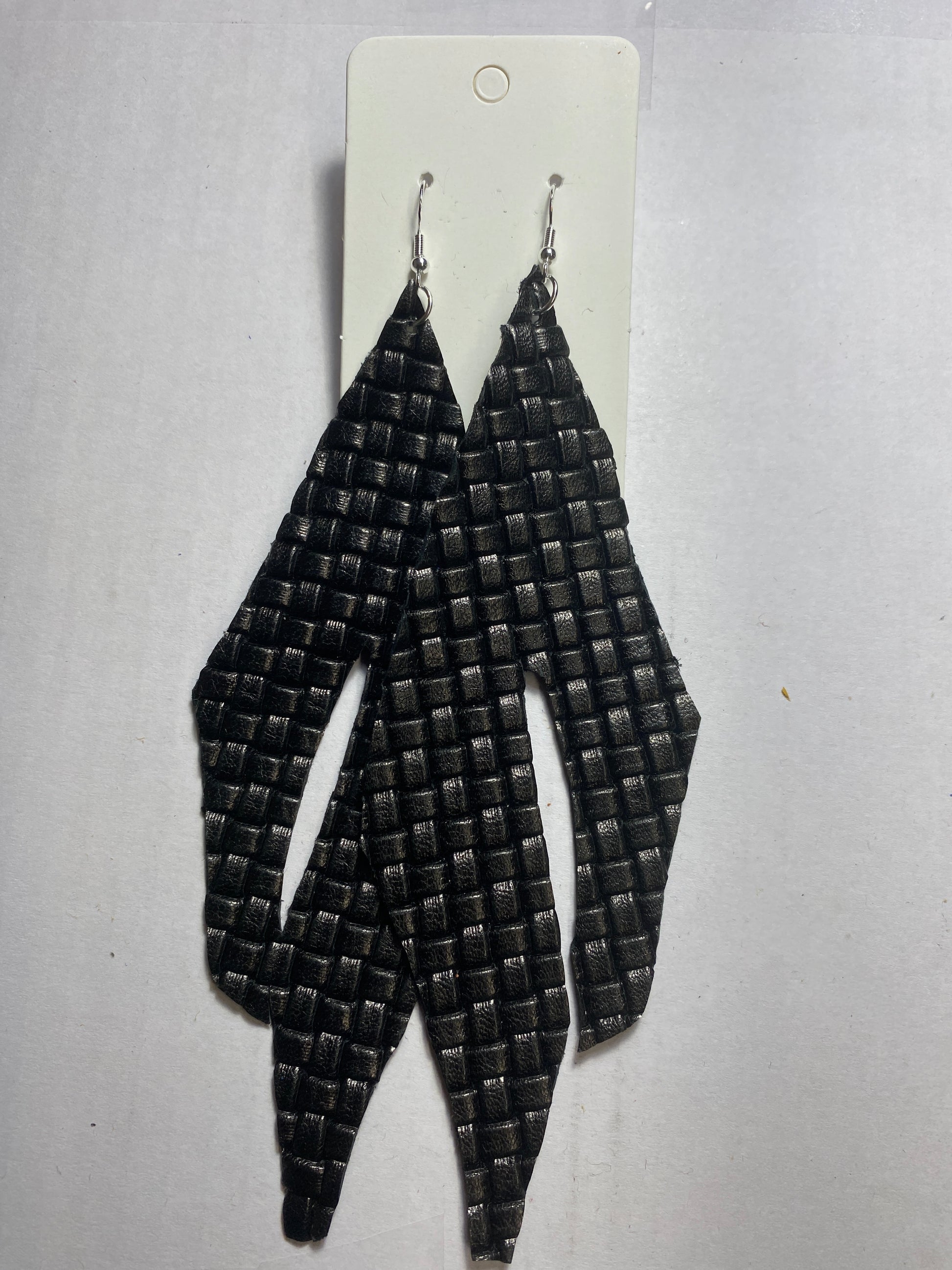These styled earrings were influenced by boot art and are handmade by Sherry. Made of genuine suede and leather with sterling silver hooks, they are lightweight and soft.