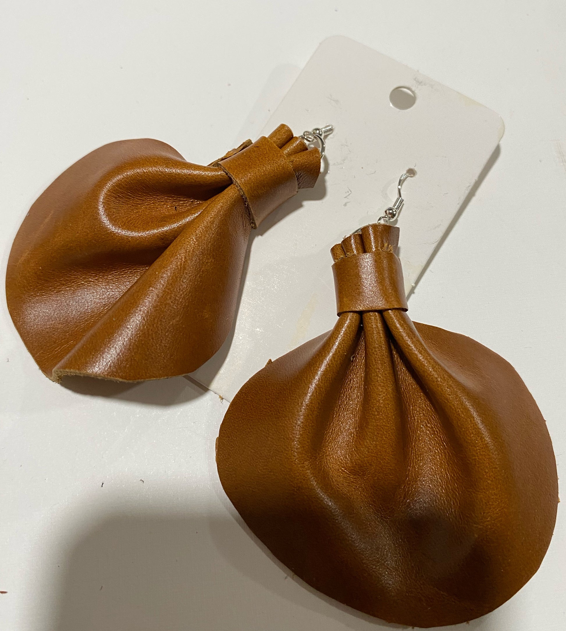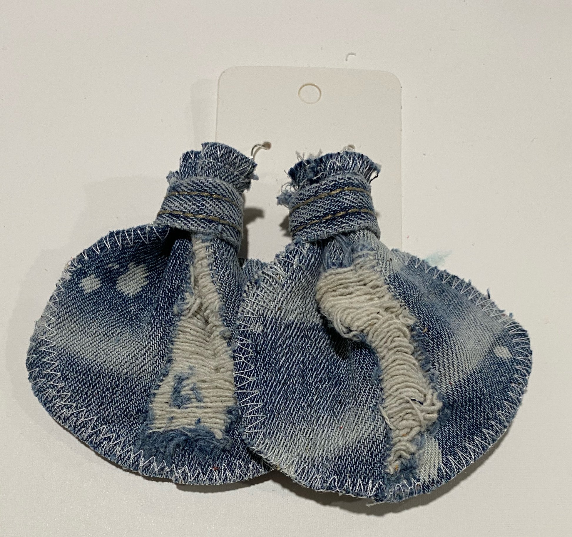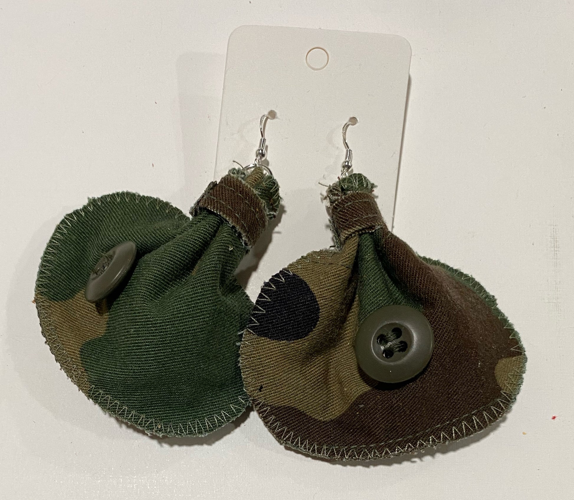 The medium elephant ear measuring 3 x 3 are made of genuine leather, denim, and camouflage prints, with sterling silver hypoallergenic hooks, they add pop to any outfit!