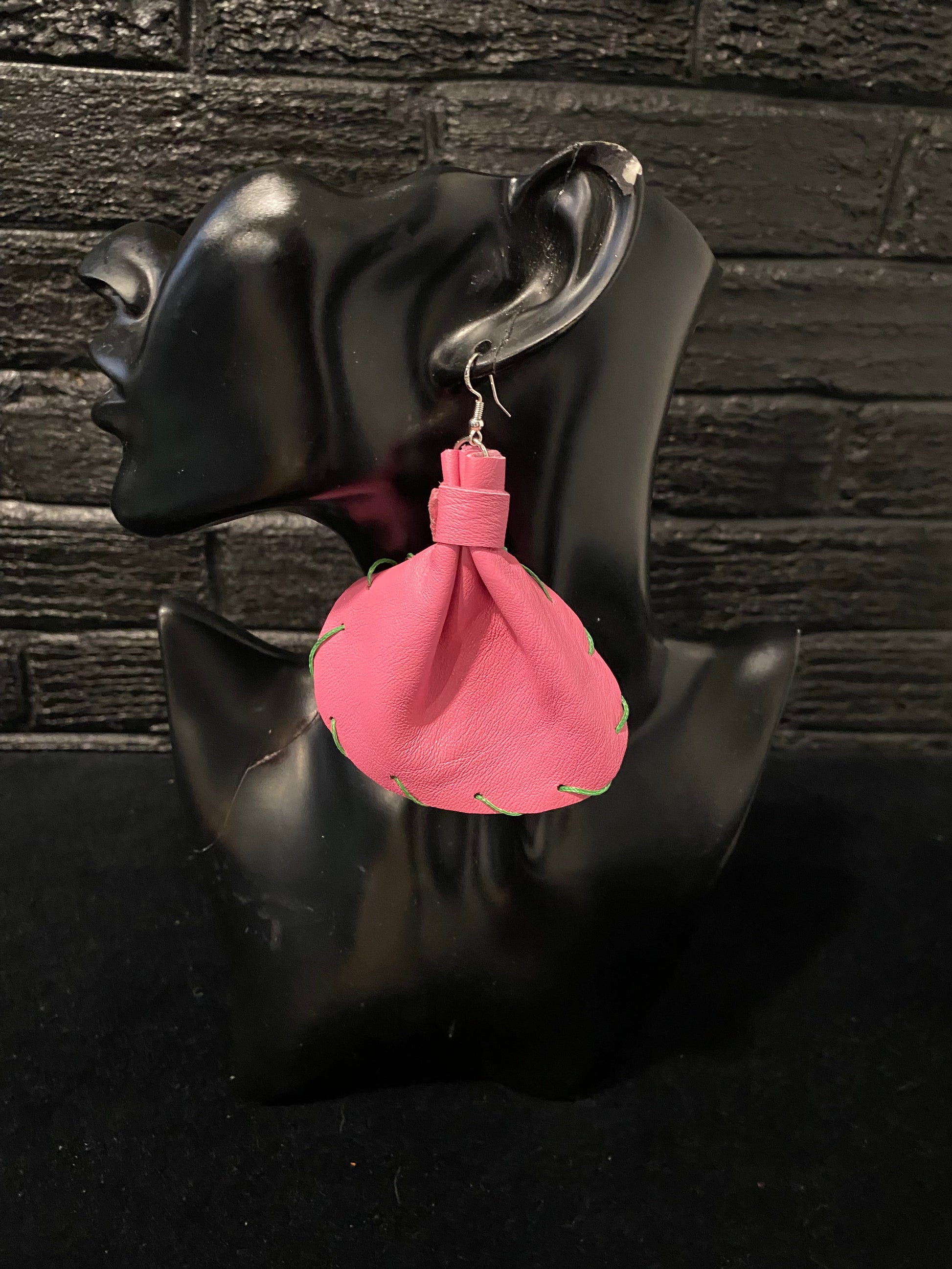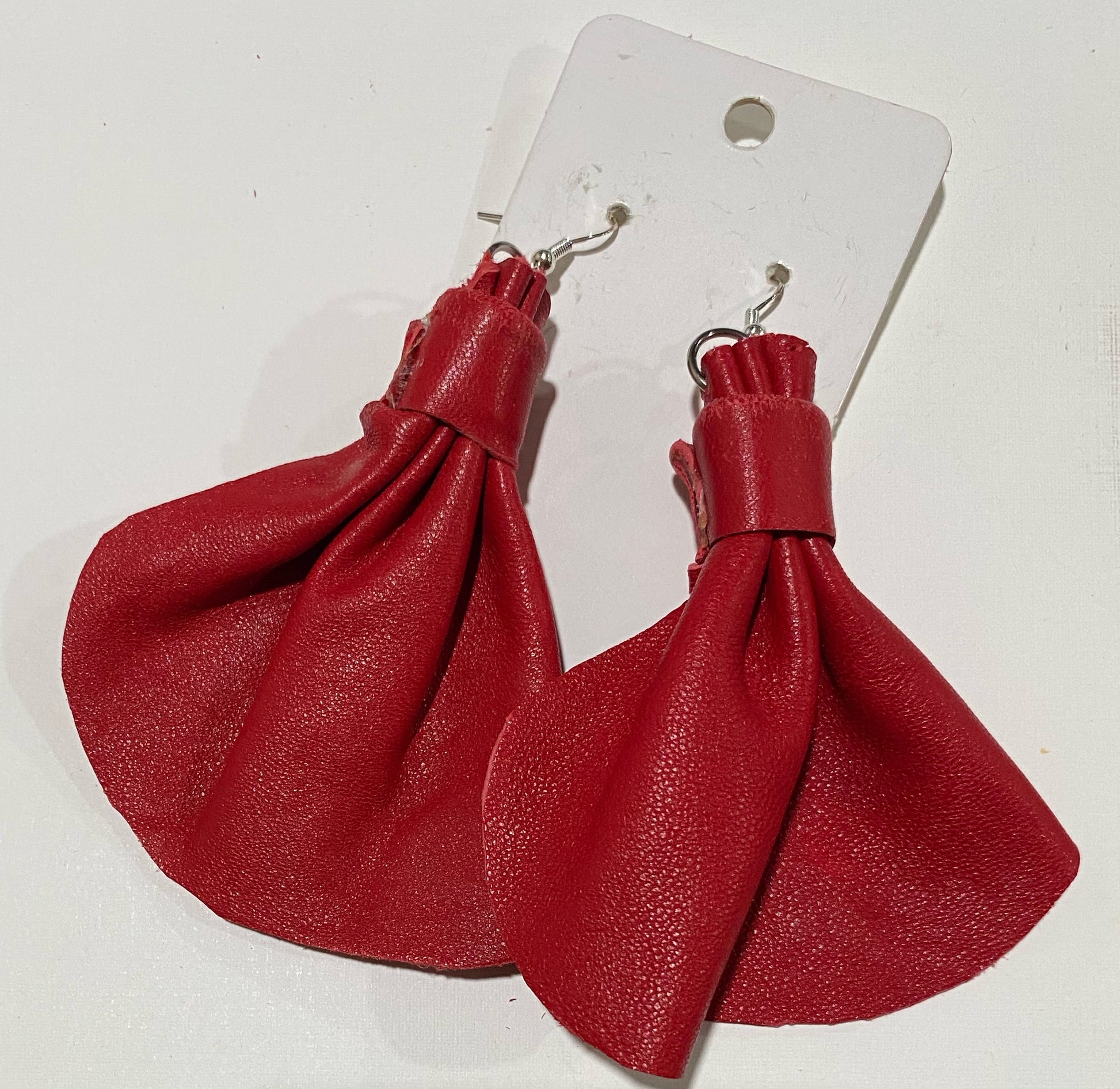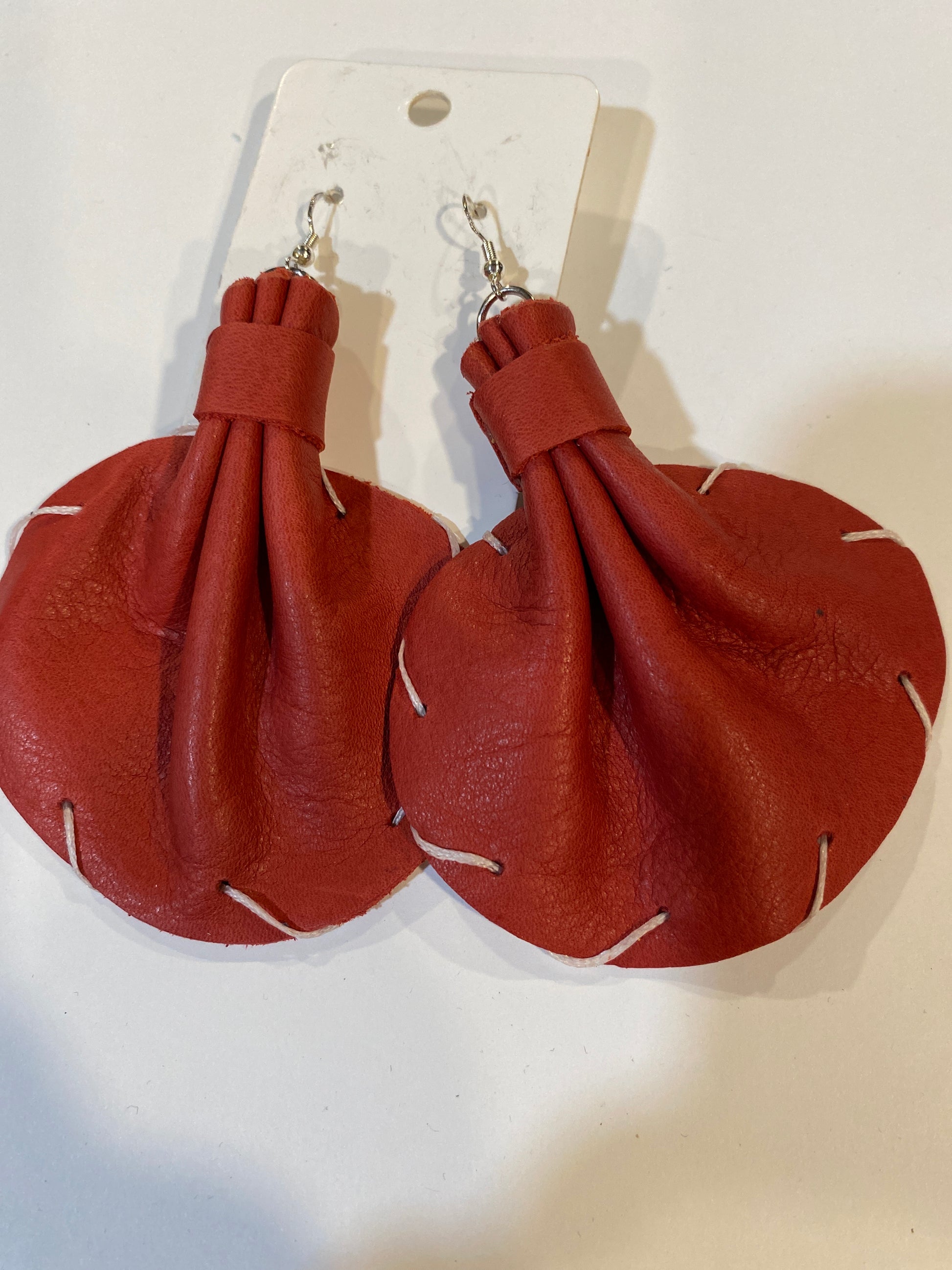 The medium elephant ear measuring 3 x 3 are made of genuine leather, denim, and camouflage prints, with sterling silver hypoallergenic hooks, they add pop to any outfit!